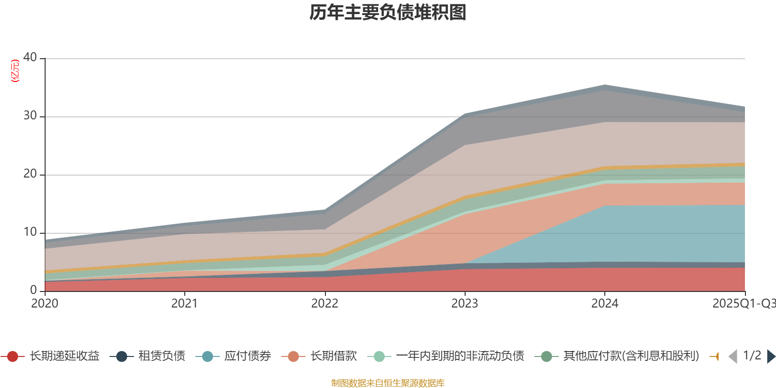 负债重大变化方面,截至2025年三季度末,公司短期借款较上年末减少68.77%,占公司总资产比重下降5.84个百分点;应付债券较上年末增加2.12%,占公司总资产比重上升1.5个百分点;其他应付款(含利息和股利)较上年末增加16.35%,占公司总资产比重上升0.72个百分点;长期借款较上年末增加2.32%,占公司总资产比重上升0.6个百分点。
