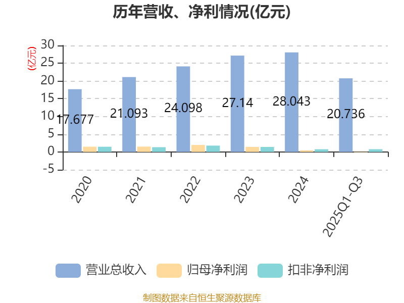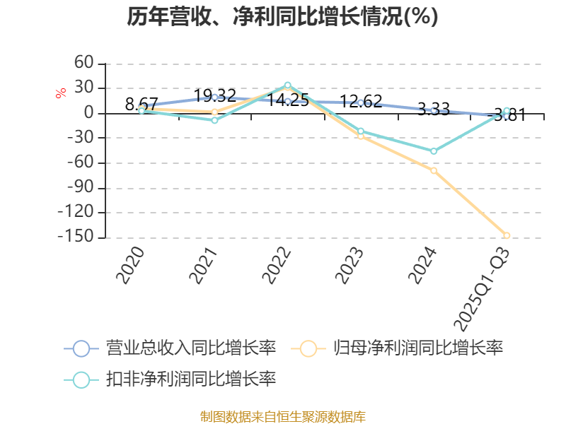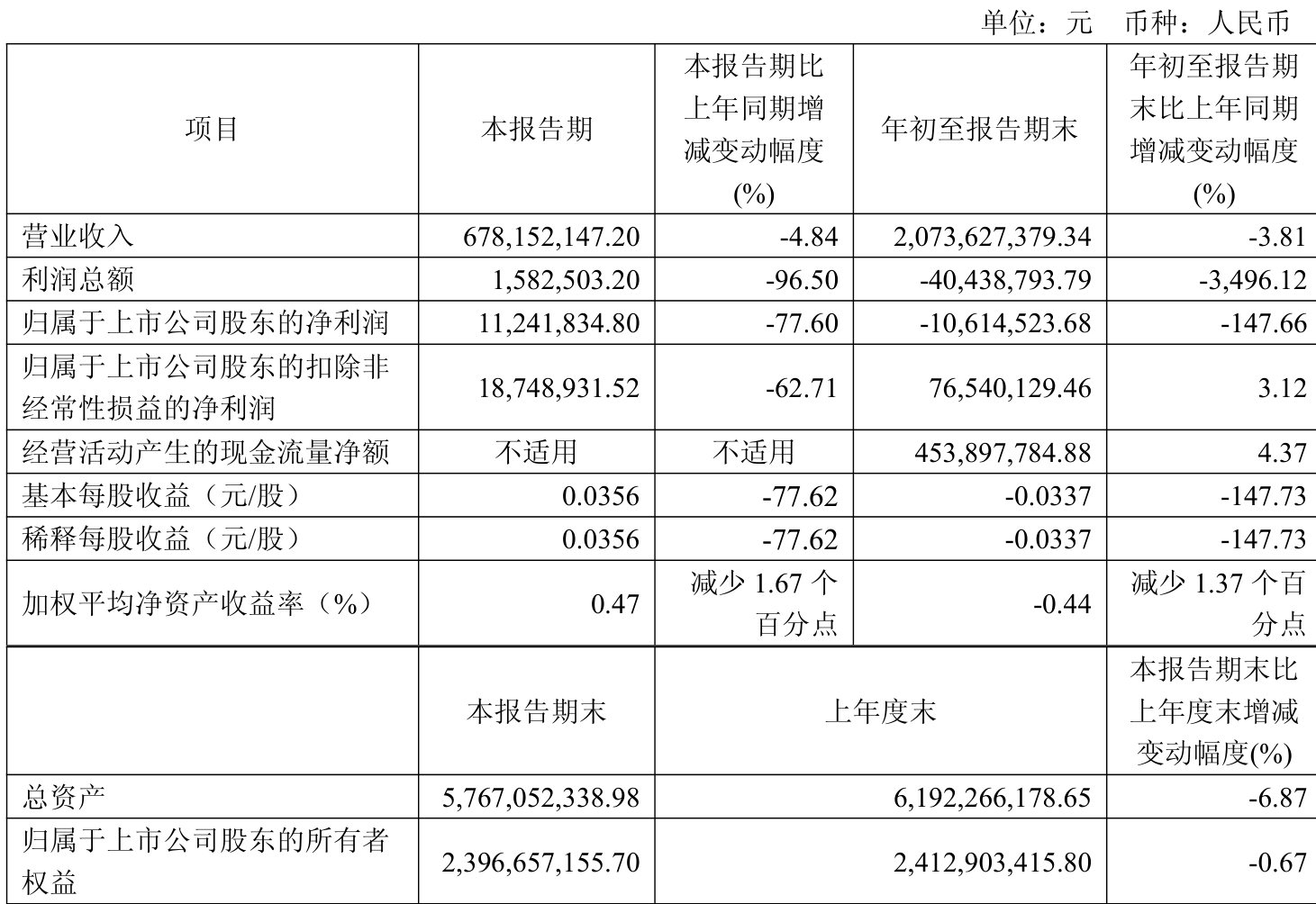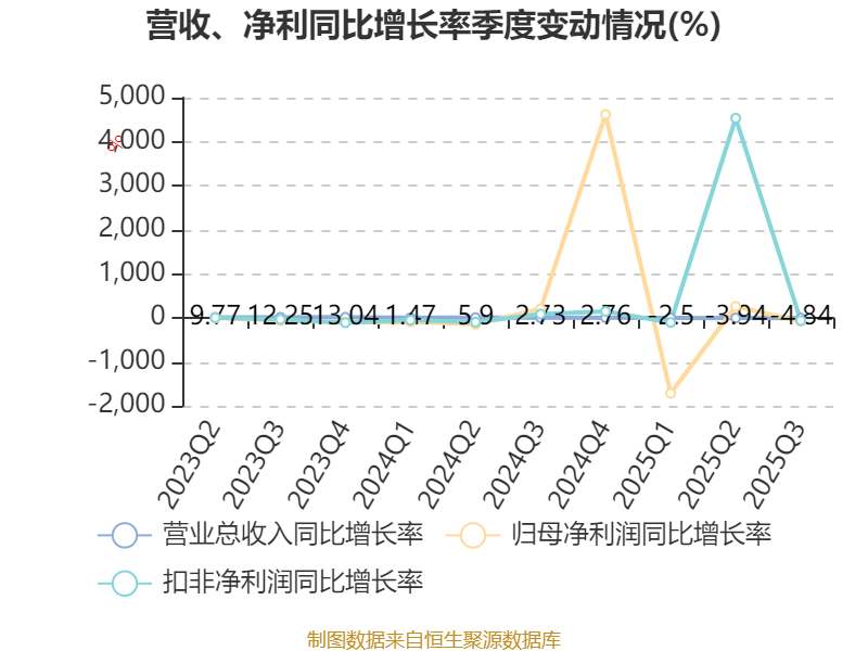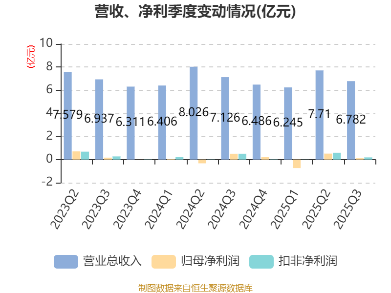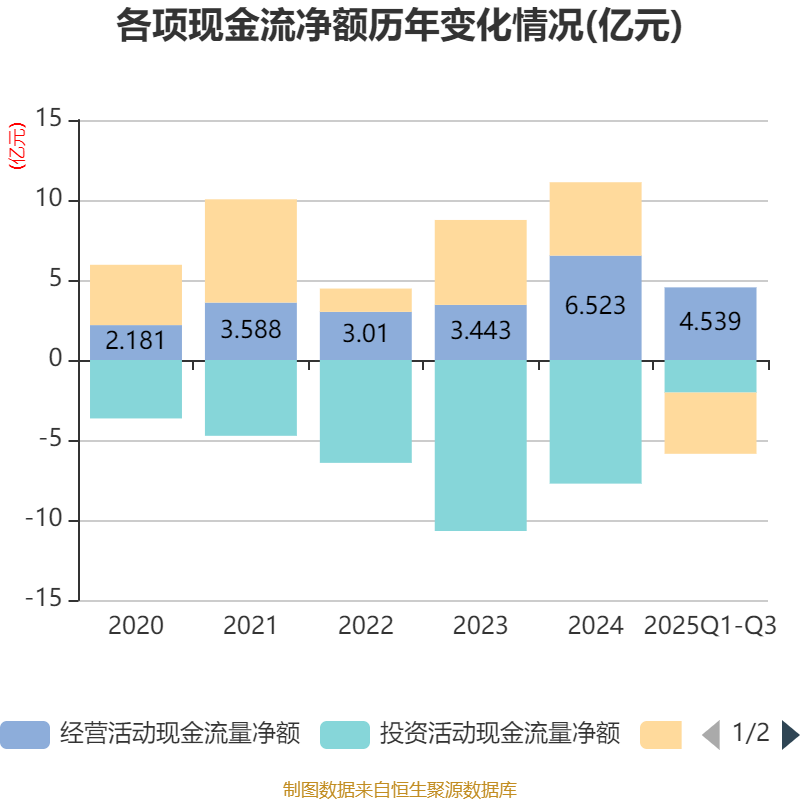2025年前三季度,公司经营活动现金流净额为4.54亿元,同比增长4.37%;筹资活动现金流净额-3.83亿元,同比减少4.81亿元;投资活动现金流净额-2.03亿元,上年同期为-5.17亿元。