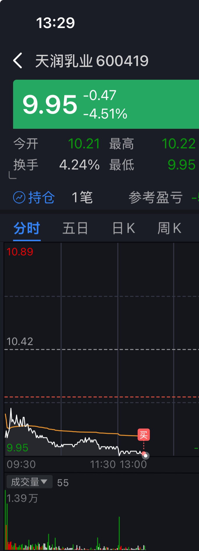 $天润乳业(SH600419)$ 小机构熬不住了,哥来接盘加点仓~