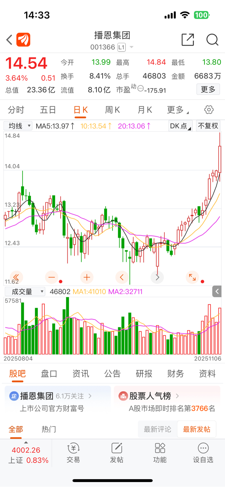 $天润乳业(SH600419)$ 这个熬了差不多一年,收割了,46 %