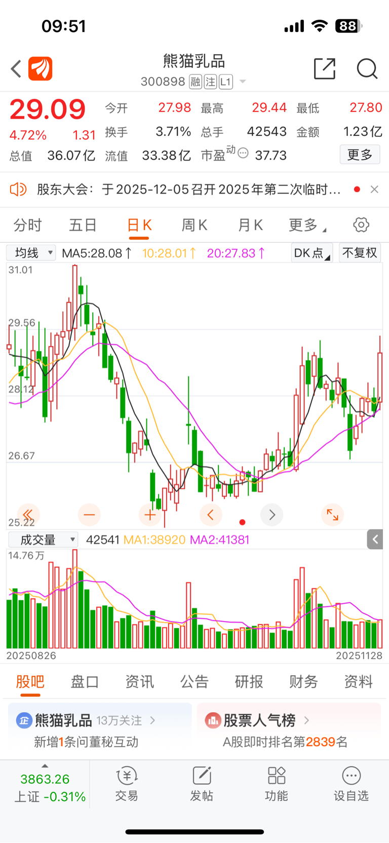 $天润乳业(SH600419)$ 质地比熊猫强太多
