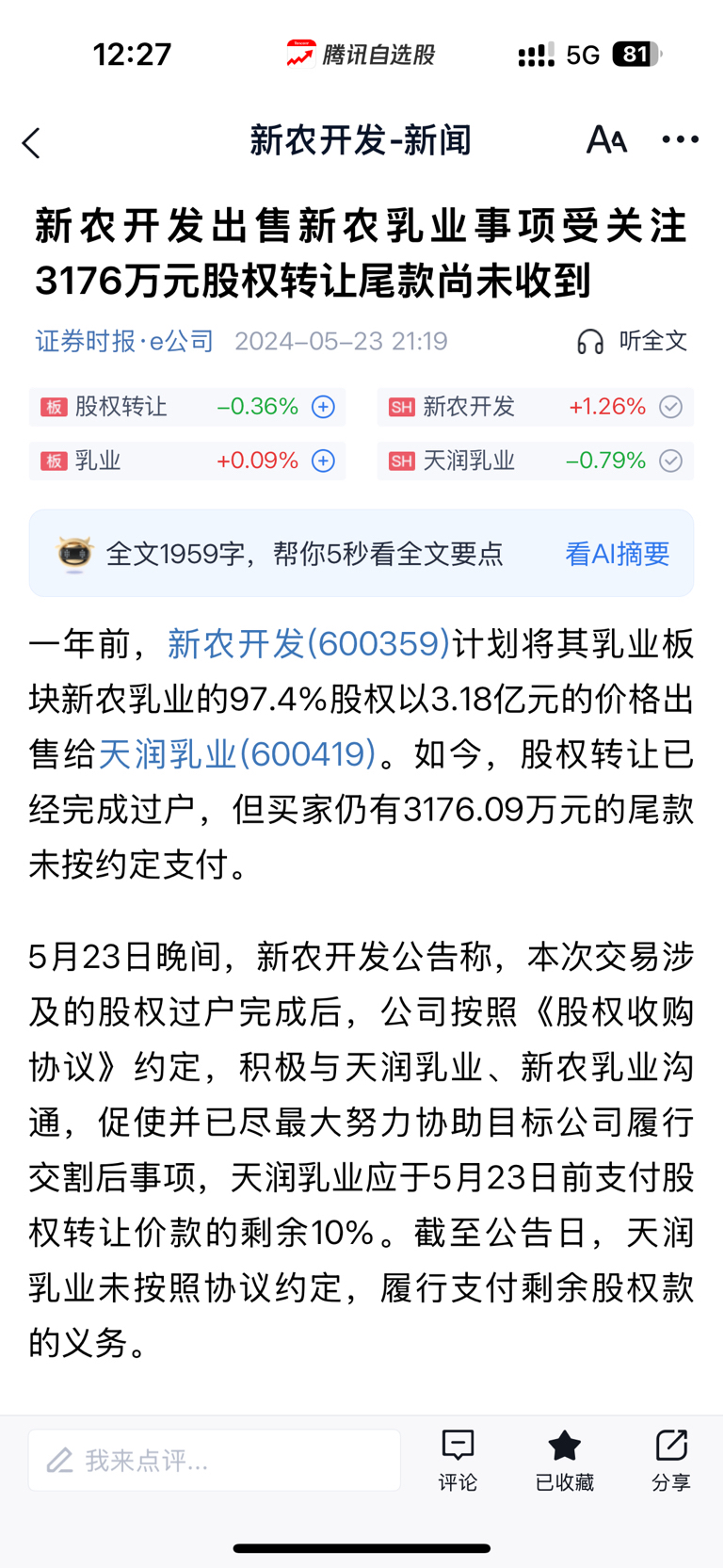 $天润乳业(SH600419)$