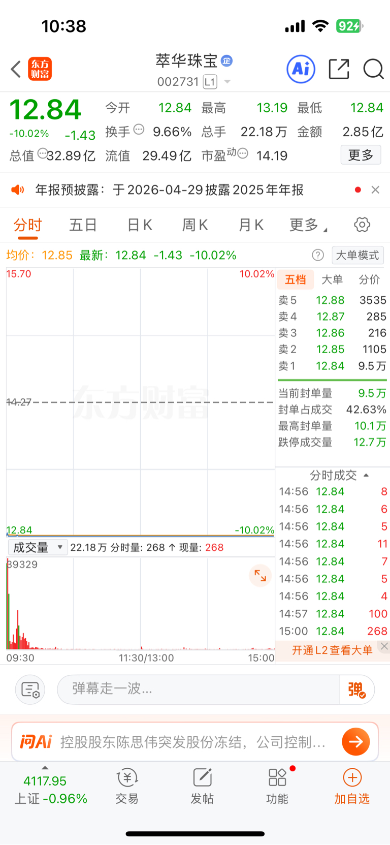 温馨提示: 1.根据《证券法》规定,禁止编造、传播虚假信息或者误导性信息,扰乱证券市场;2.用户在本社区发表的所有资料、言论等仅代表个人观点,与本网站立场无关,不对您构成任何投资建议。用户应基于自己的独立判断,自行决定证券投资并承担相应风险。《东方财富社区管理规定》