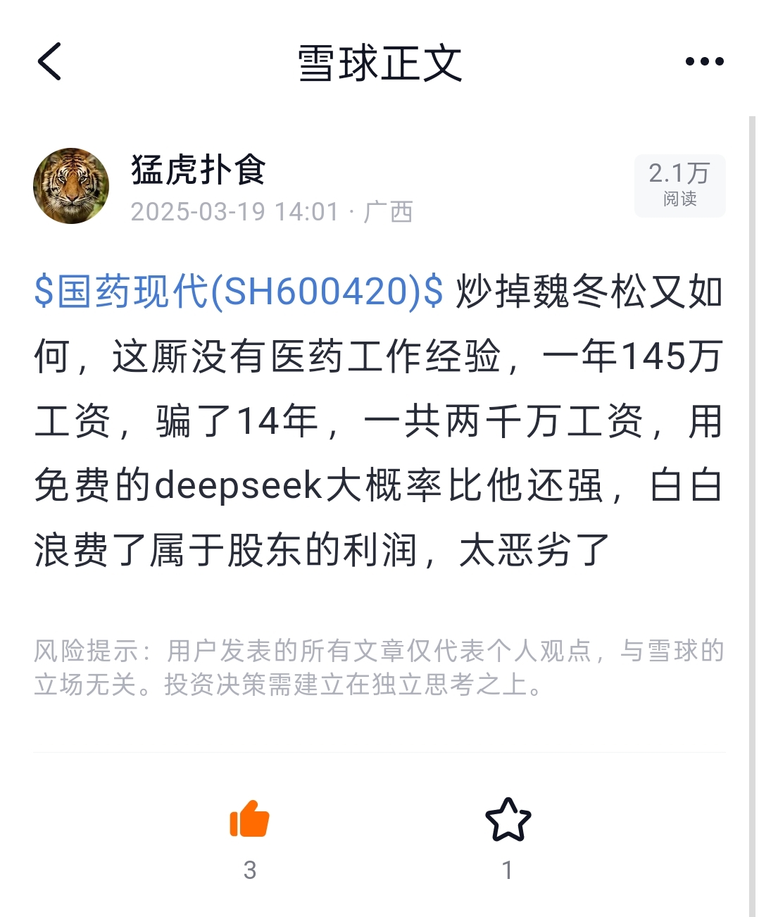 $国药现代(SH600420)$ 魏冬松和李显林,知道什么叫老虎发威了吗!