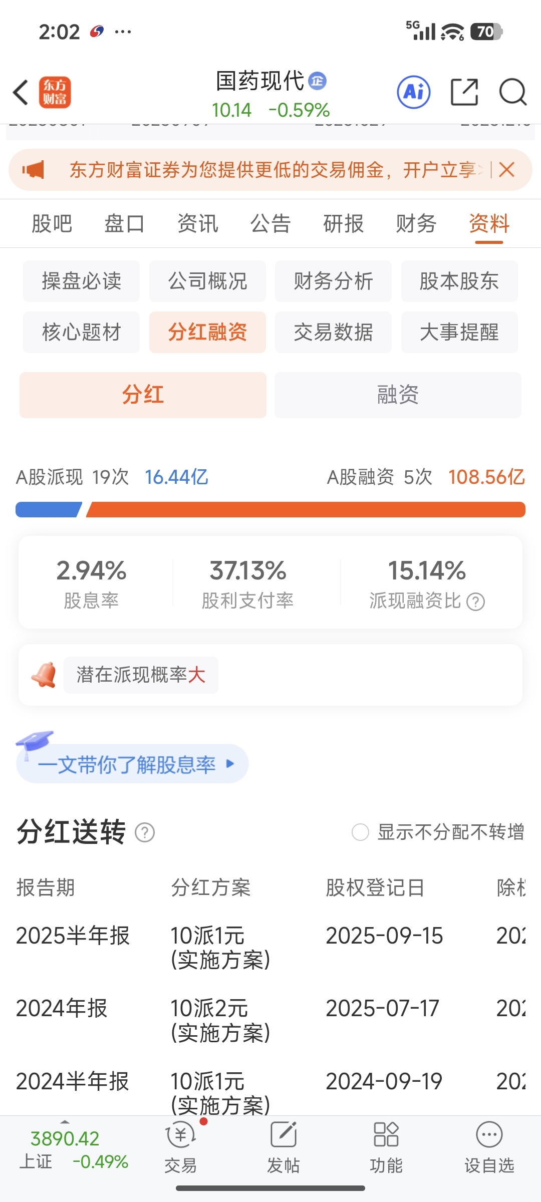 $国药现代(SH600420)$ 上市以来融资105亿分红17亿?还要融资?
