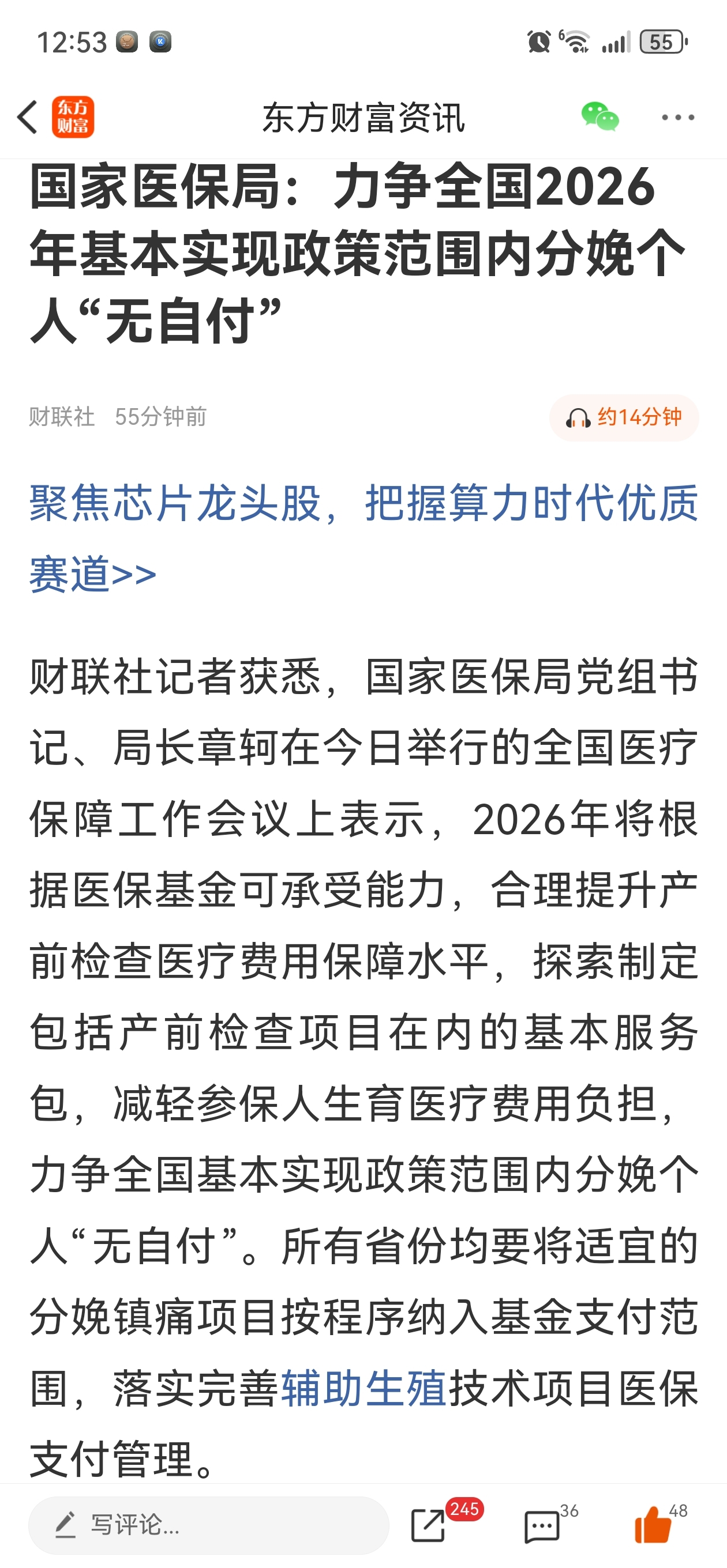 $国药现代(SH600420)$ 所有省份均要将适宜的分娩镇痛项目按程序纳入基金支付范围,落实完善辅助生殖技术项目医保支付管理。