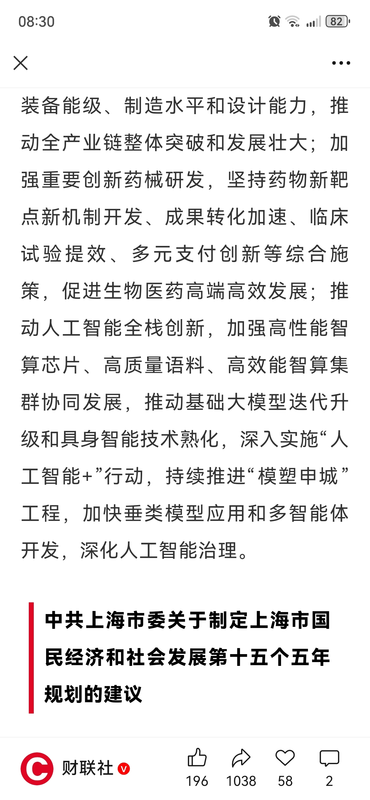 上海市十五五规划重磅公布!要加强重要创新药械研发,坚持药物新靶点新机制开发、成果