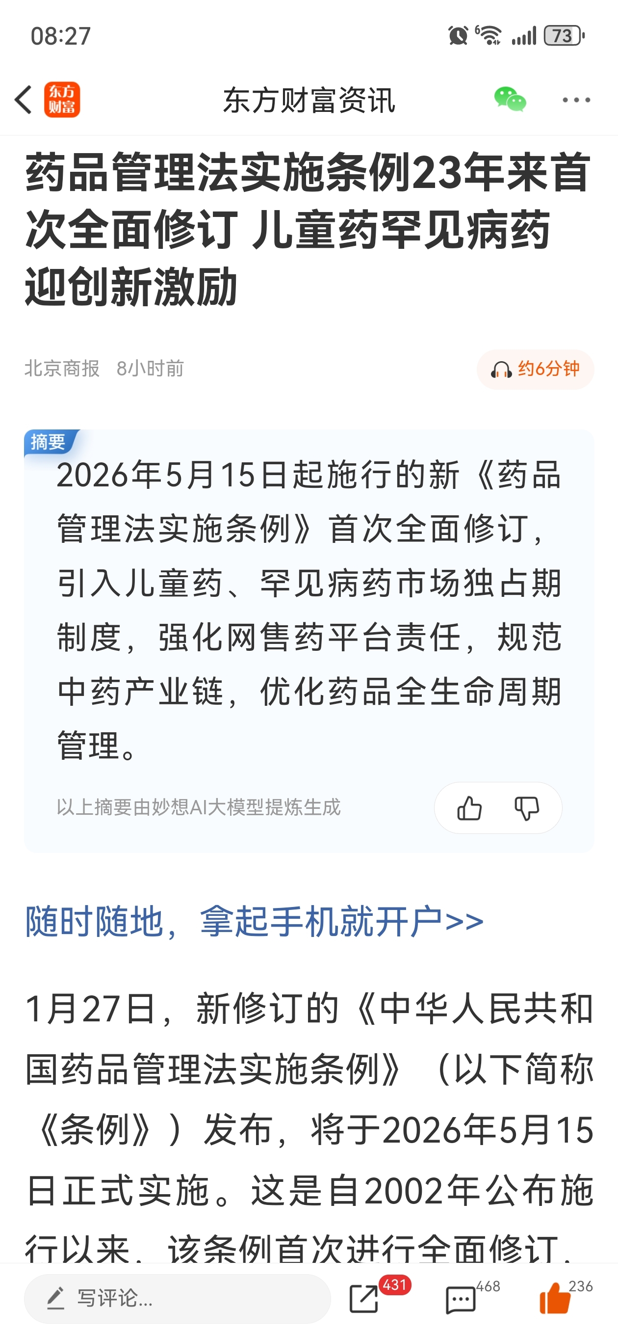 国家这是鼓励药企创新啊,利好国药现代这种仿制转型创新药的大型药企,对于研发出来创新药,居然给出长达7年的市场经营垄断期。