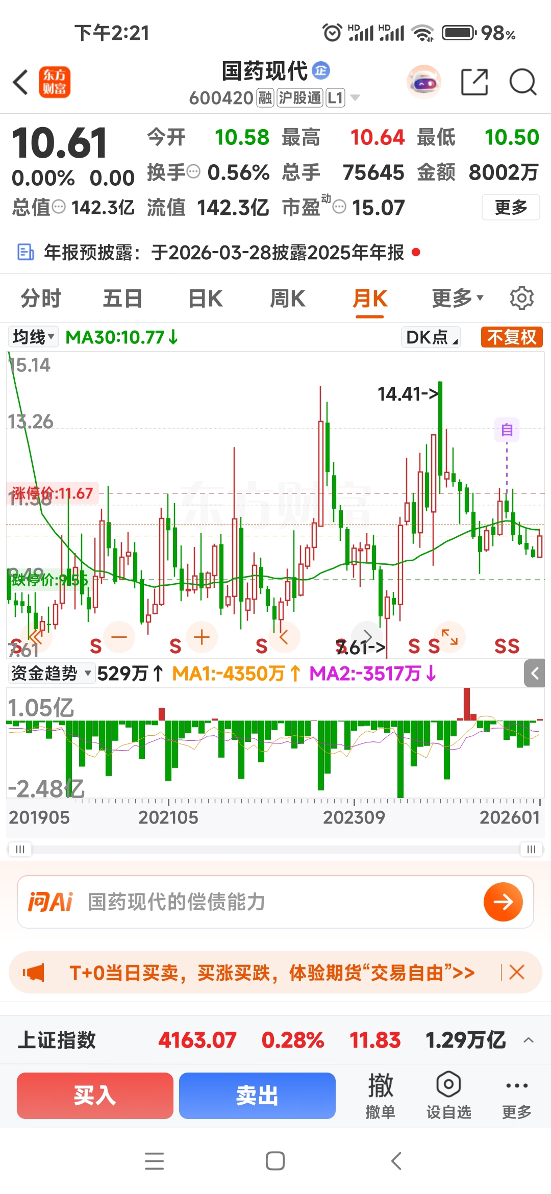 $国药现代(SH600420)$ 看看月K线,正常回调一段时间,还是有机会翻盘的。