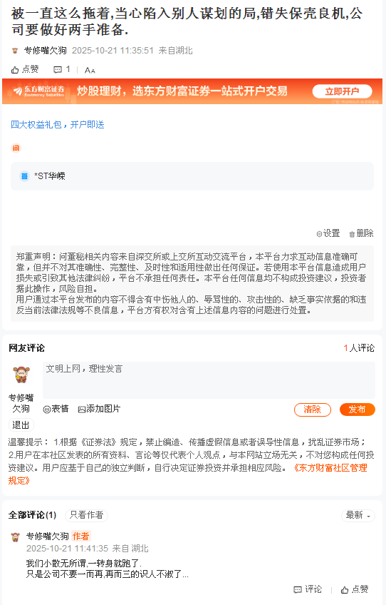 温馨提示: 1.根据《证券法》规定,禁止编造、传播虚假信息或者误导性信息,扰乱证券市场;2.用户在本社区发表的所有资料、言论等仅代表个人观点,与本网站立场无关,不对您构成任何投资建议。用户应基于自己的独立判断,自行决定证券投资并承担相应风险。《东方财富社区管理规定》