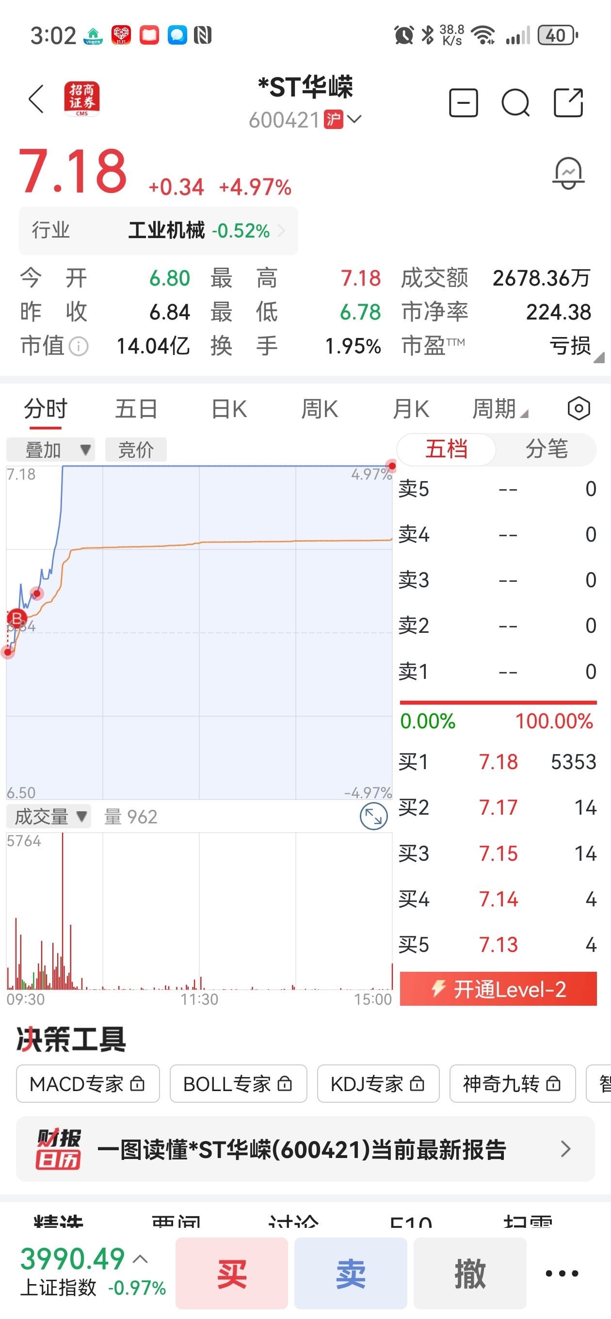 $*ST华嵘(SH600421)$ 诗人平时很少打板追票,这次破个例!结果尾盘只部份成交了几千块...我猜你能连板(个人浅见),结果下周见。