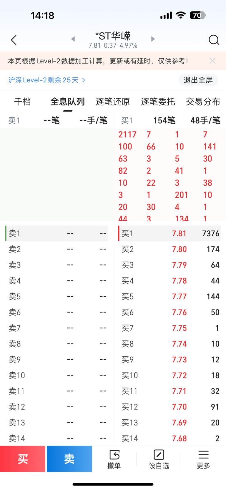 $*ST华嵘(SH600421)$ 这个3300的大单买了1个小时,看样子没人卖了