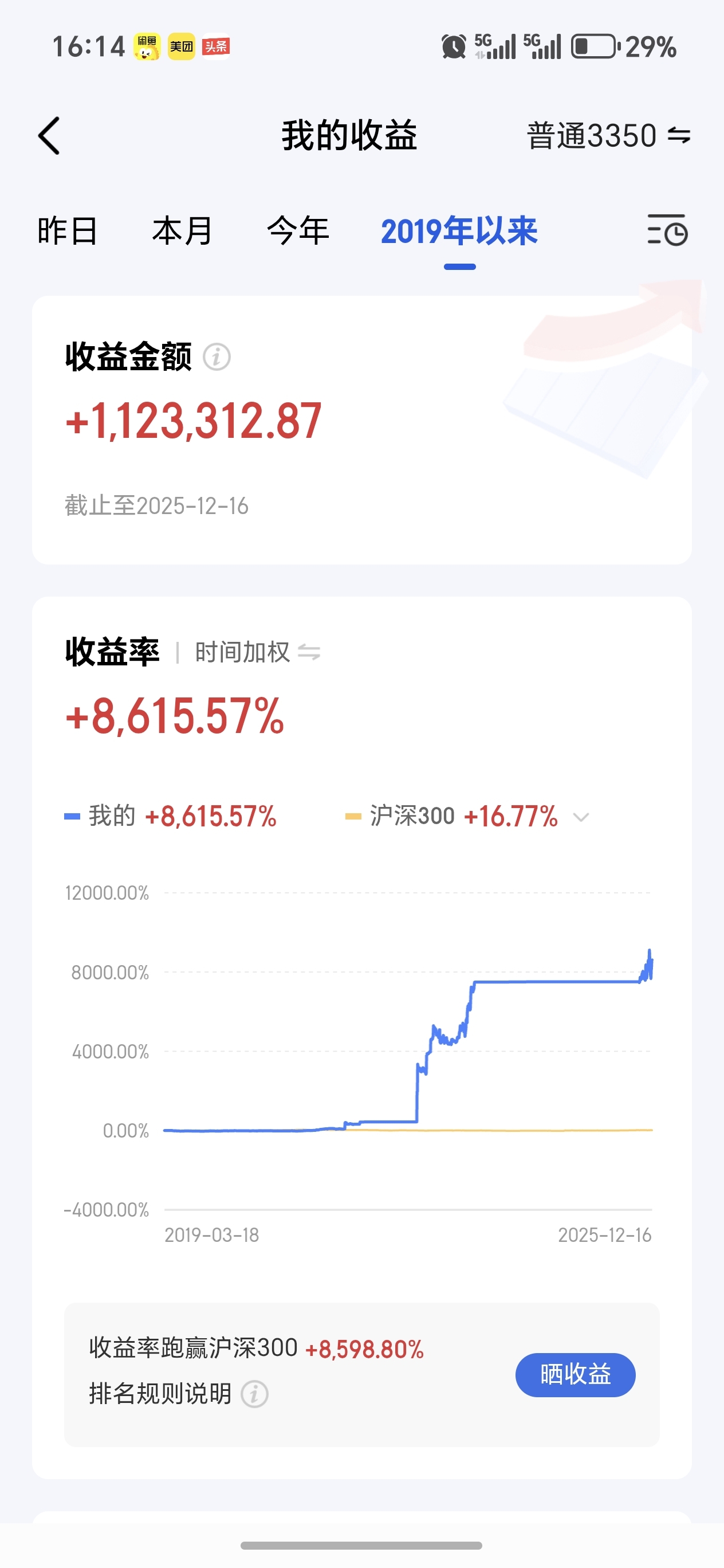 我向众人请教是谦虚。很可笑,有人说我是小白,今天晒晒2019年以来的帐户收益