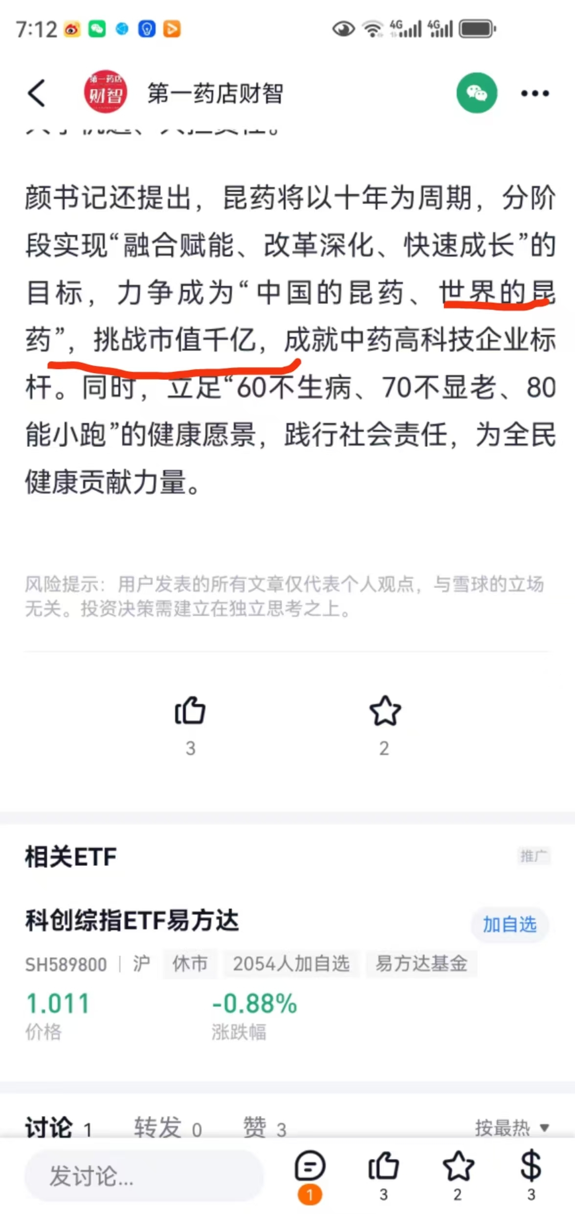颜总提到昆药要挑战千亿市值,看来昆药有望成为近十倍空间的牛票!