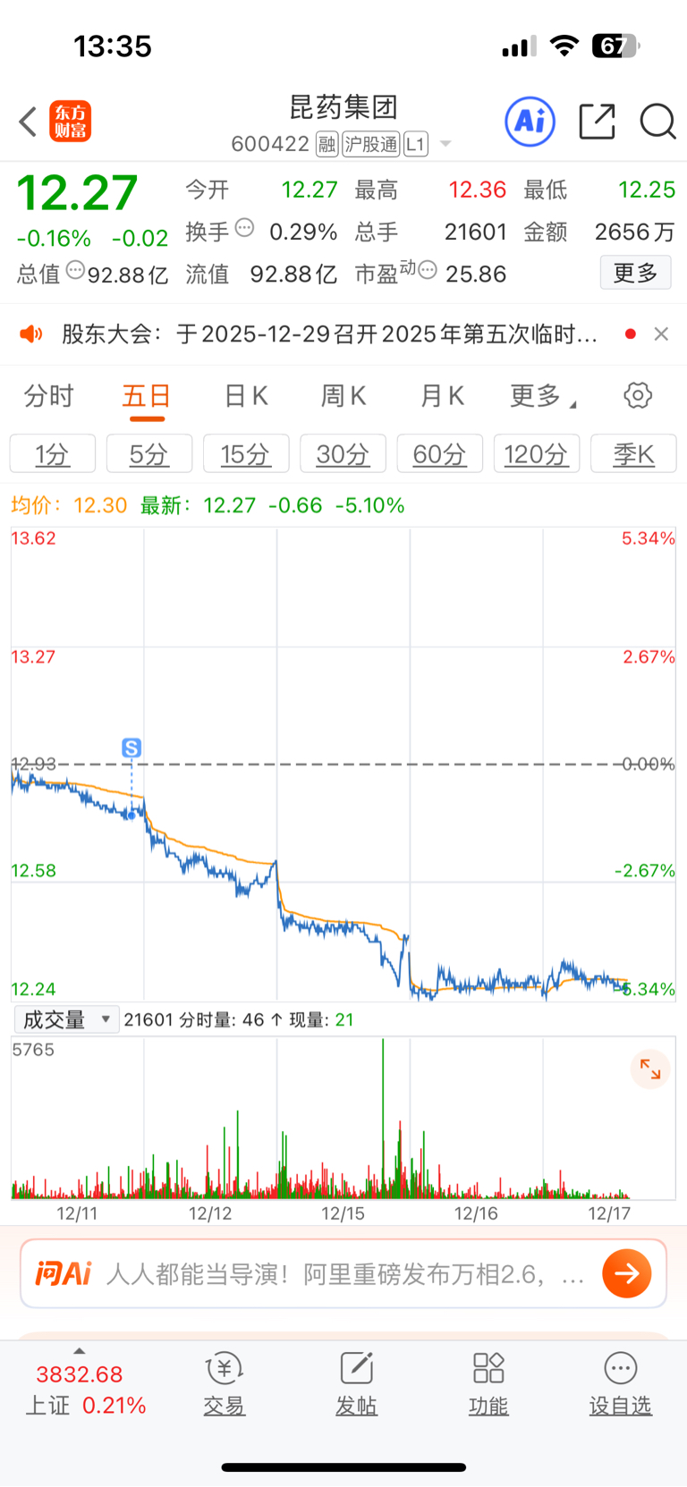 $昆药集团(SH600422)$ 幸亏老子跑得快,等待二次底背离进去做个短线