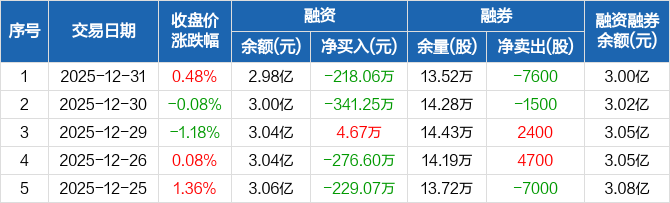 昆药集团:融资净偿还218.06万元,融资余额2.98亿元(12-31)