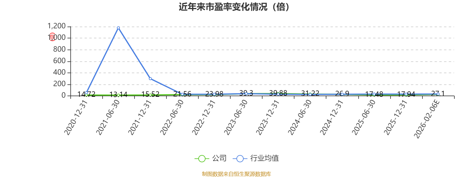 以本次披露业绩快报数据计算,公司近年市盈率(TTM)图如下所示: