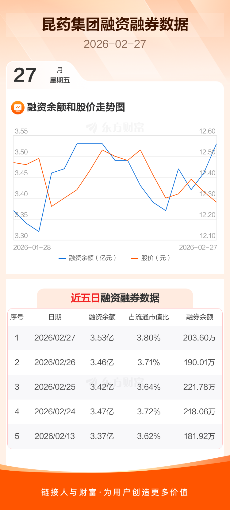 交易所最新数据显示,昆药集团于2026年2月27日获融资买入1183.22万元,融资偿还437.81万元,当日融资净买入745.41万元。目前,该股融资余额3.53亿,占流通市值比例为3.80%。