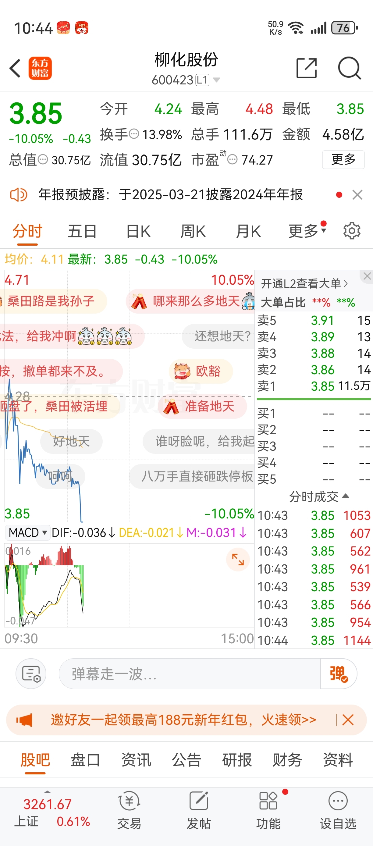 $柳化股份(SH600423)$ 12 手卖单,就干停了