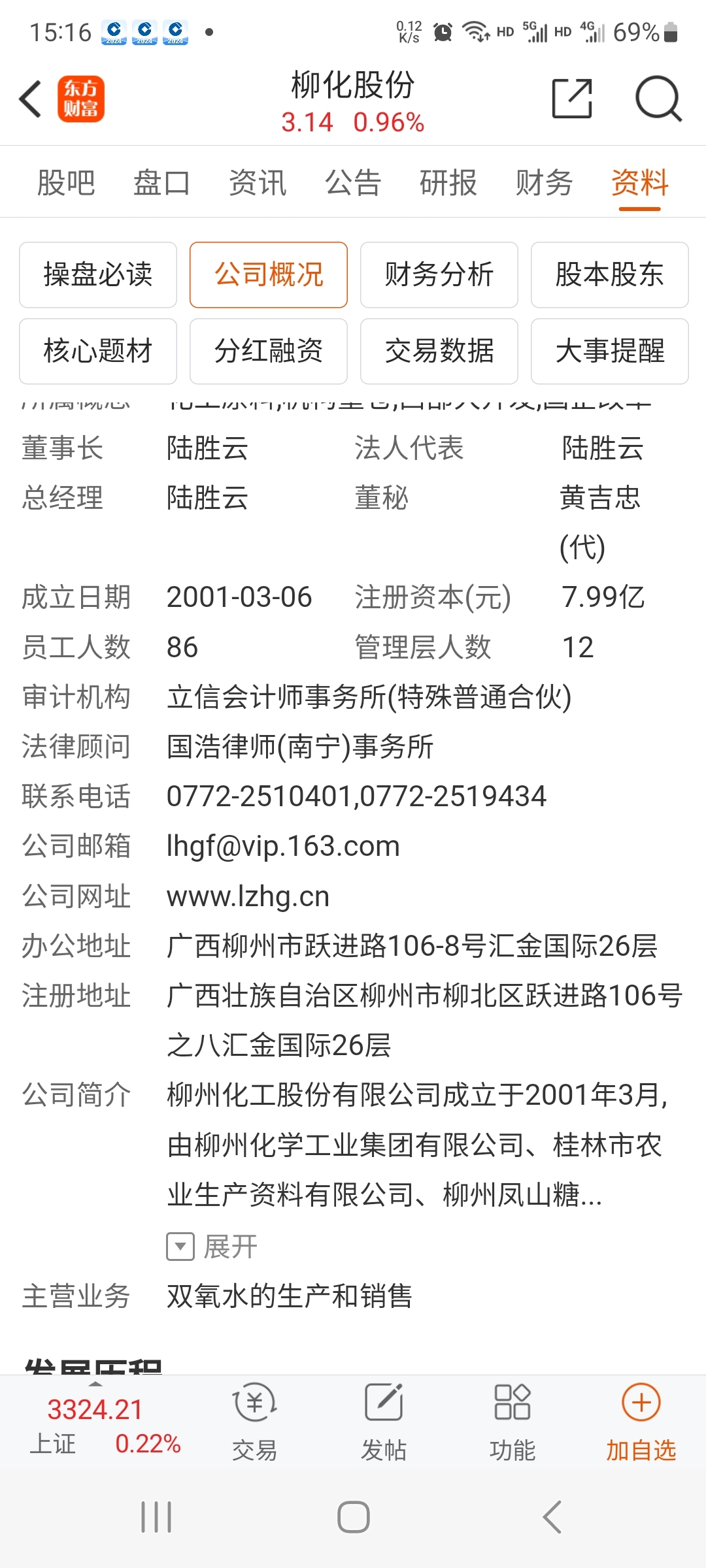 $柳化股份(SH600423)$ 最小a股主板上市公司之一,几十个人
