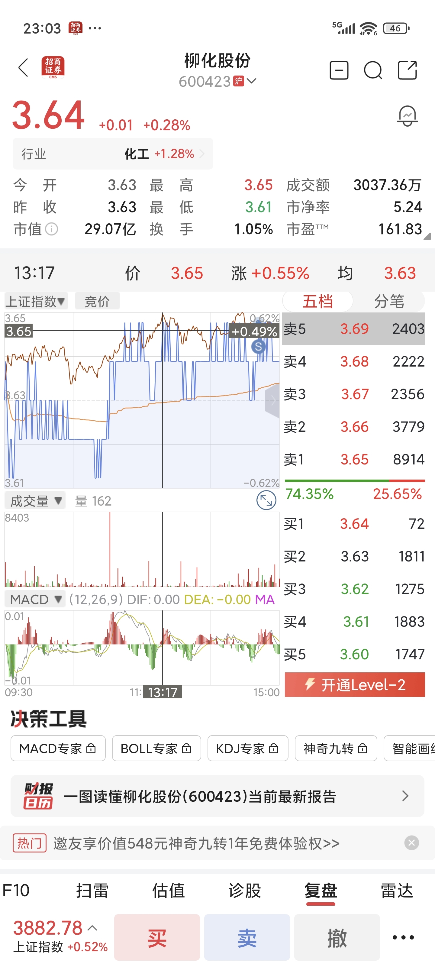 $柳化股份(SH600423)$ 走了同志们。留下的发财。