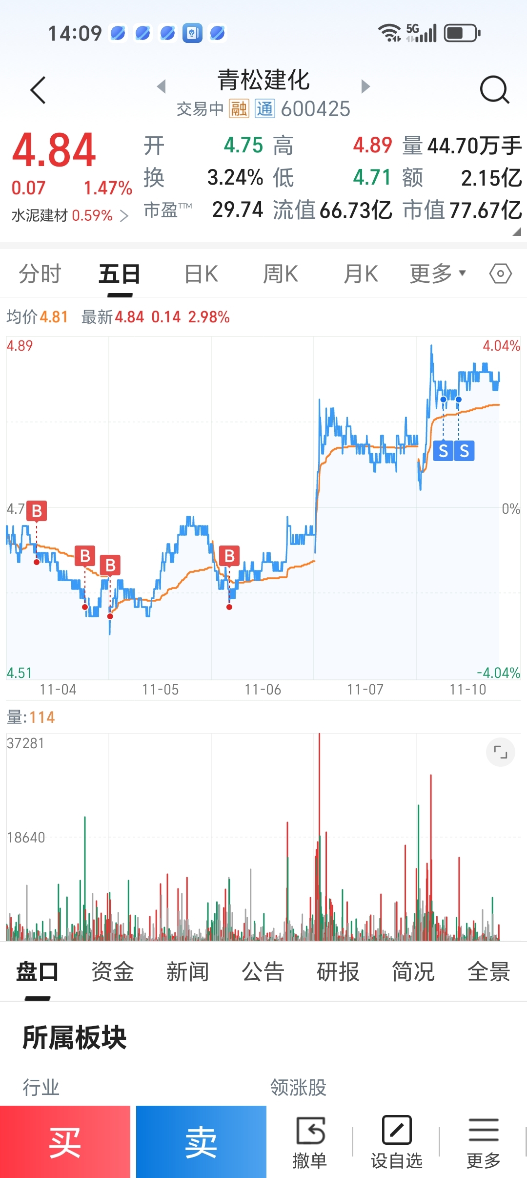 $青松建化(SH600425)$ 走了,不敢呆了,吃了一条蚂蚱腿