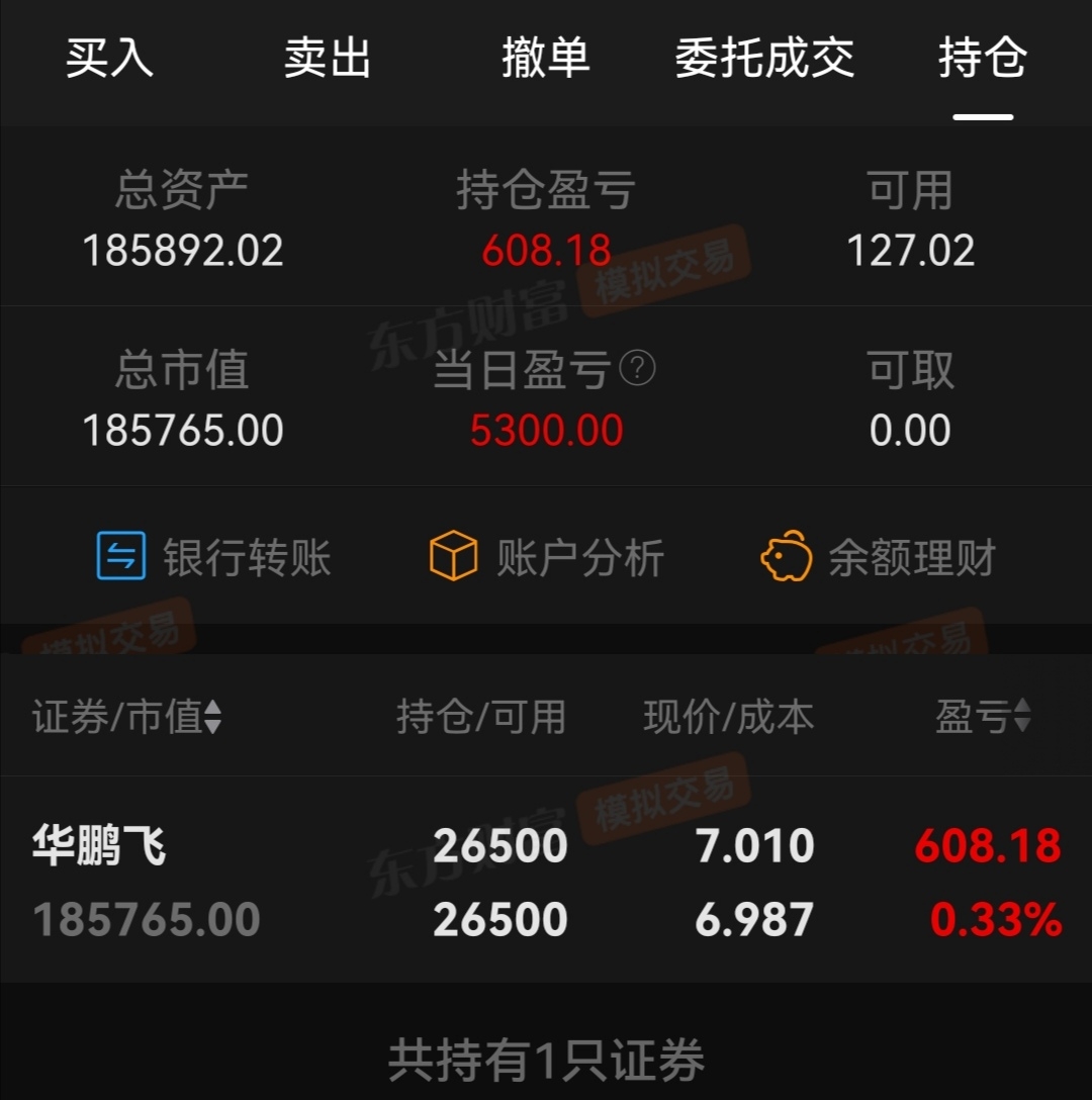 通过几天观察,昨天模拟买入,验证感觉,然后搭窝。