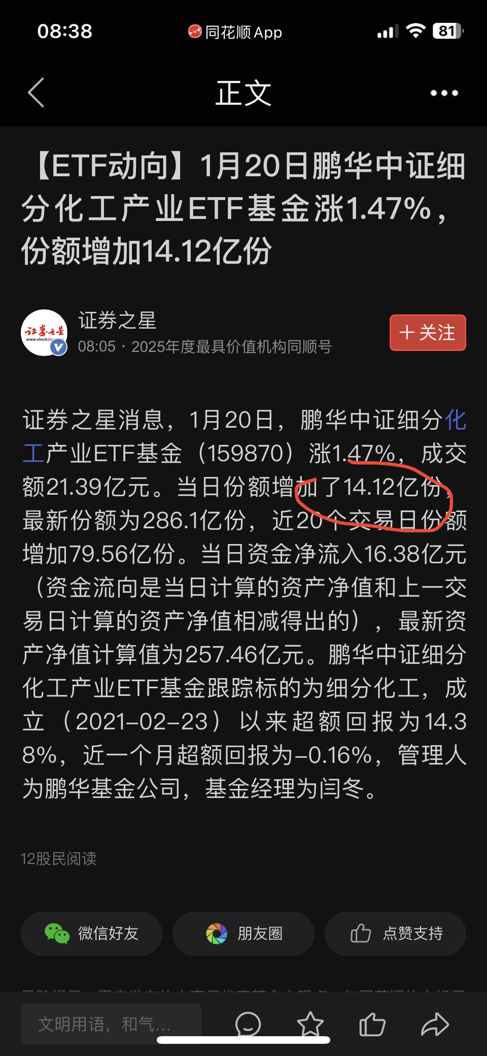 化工ETF又爆量了,按照华鲁的权重算,单这只ETF就有4千万了,不知道早盘会不会