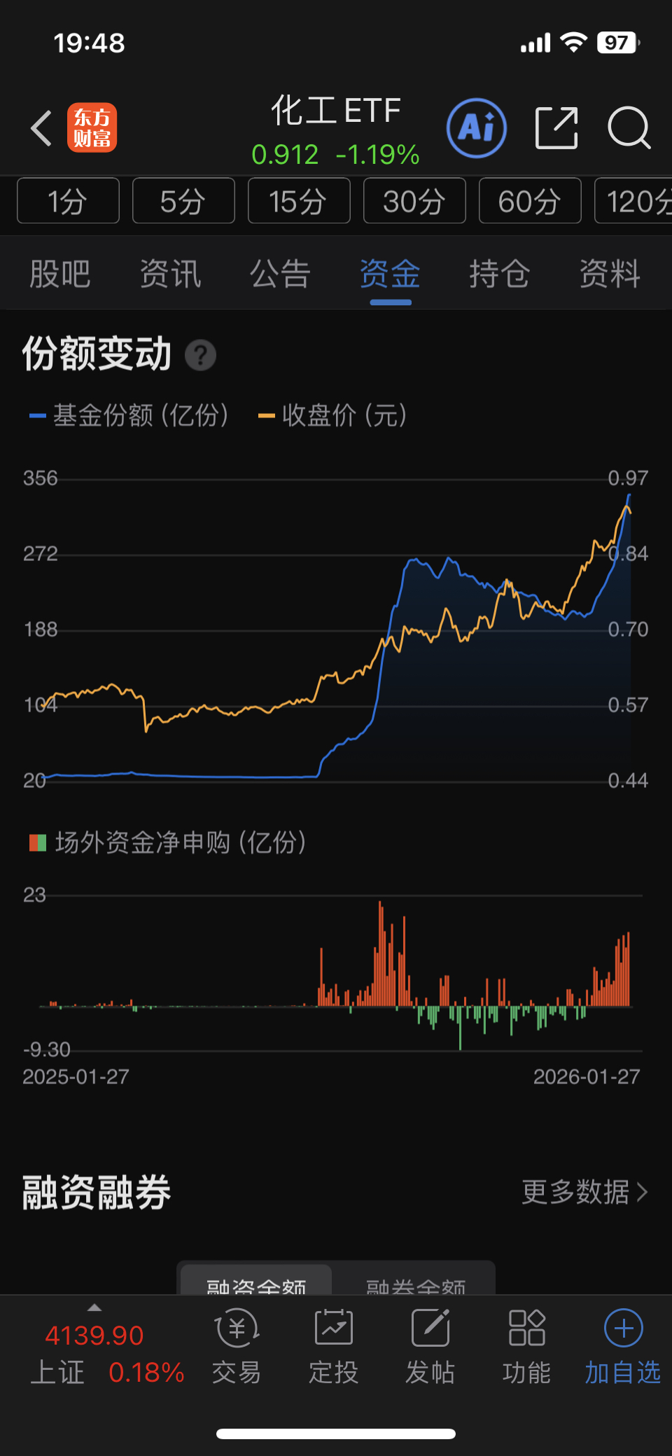 今天化工ETF场外申购还是流入的,明天估计还有八千万到一个亿的被动资金买入