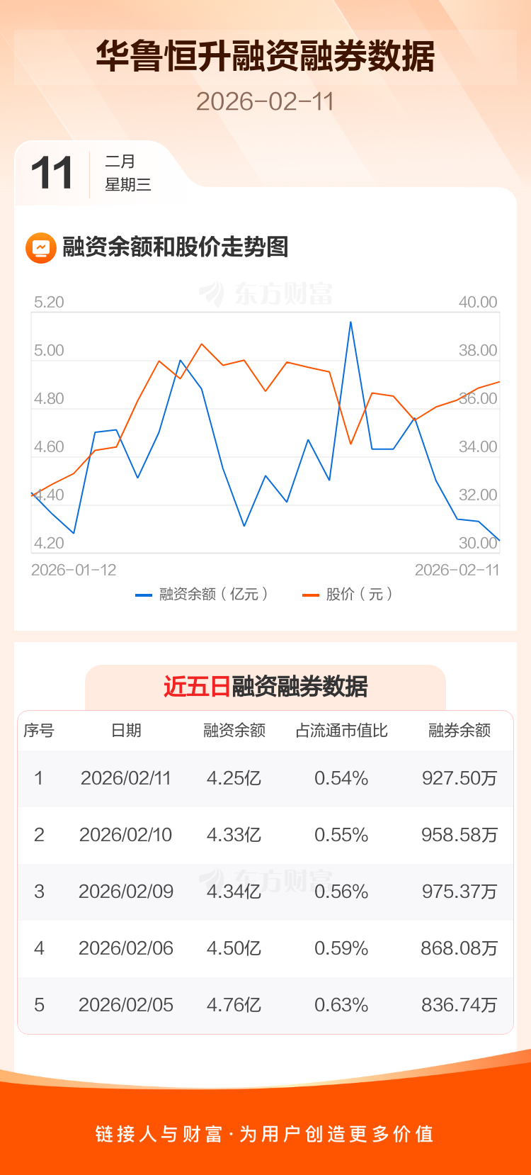 交易所最新数据显示,华鲁恒升于2026年2月11日获融资买入4090.92万元,融资偿还4928.53万元,当日融资净偿还837.61万元。目前,该股融资余额4.25亿,占流通市值比例为0.54%。