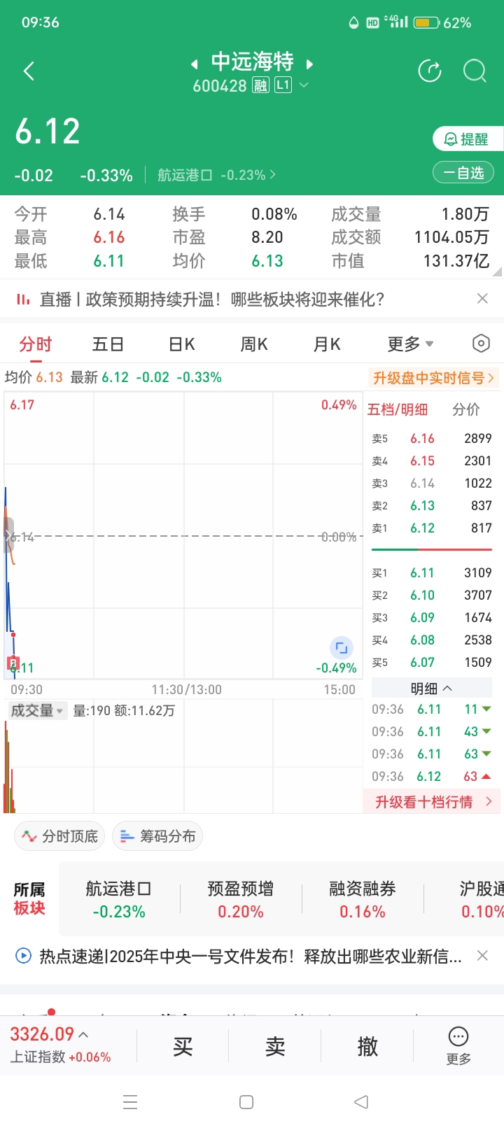 $中远海特(SH600428)$ 6.11元加仓中远海特。