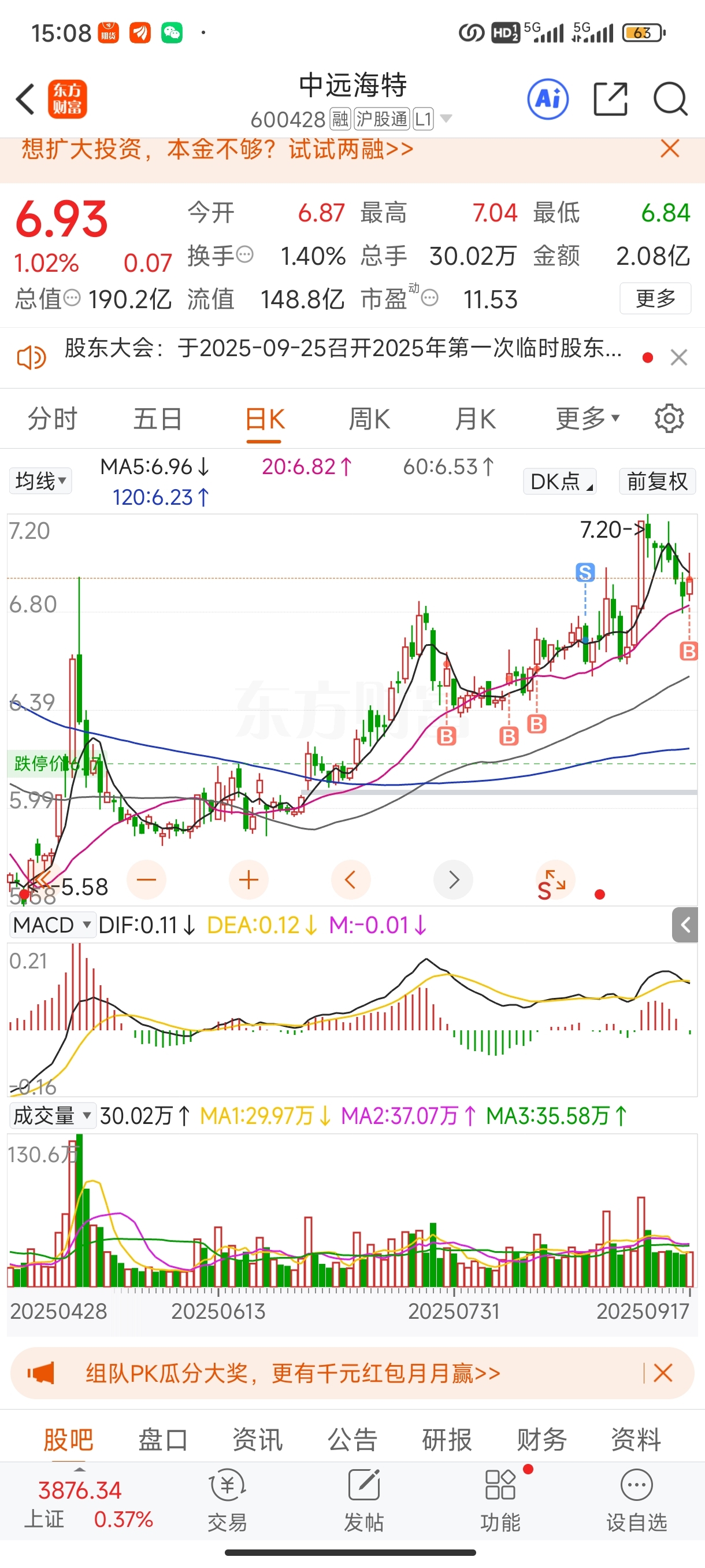 $中远海特(SH600428)$ 大盘红红火火,帐户绿油油,又回来买特特,期待有变红。