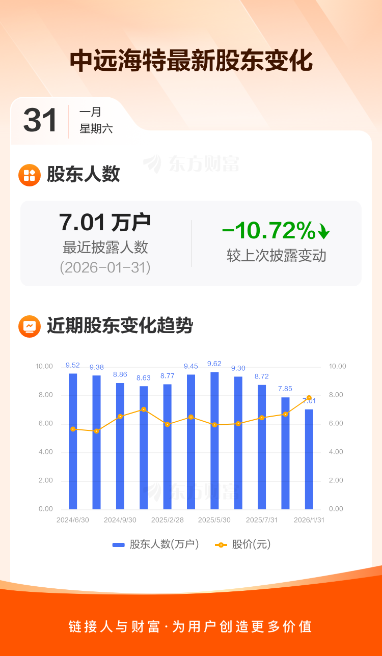 中远海特:截至1月31日最新股东户数7.01万户,较上期减少10.72%