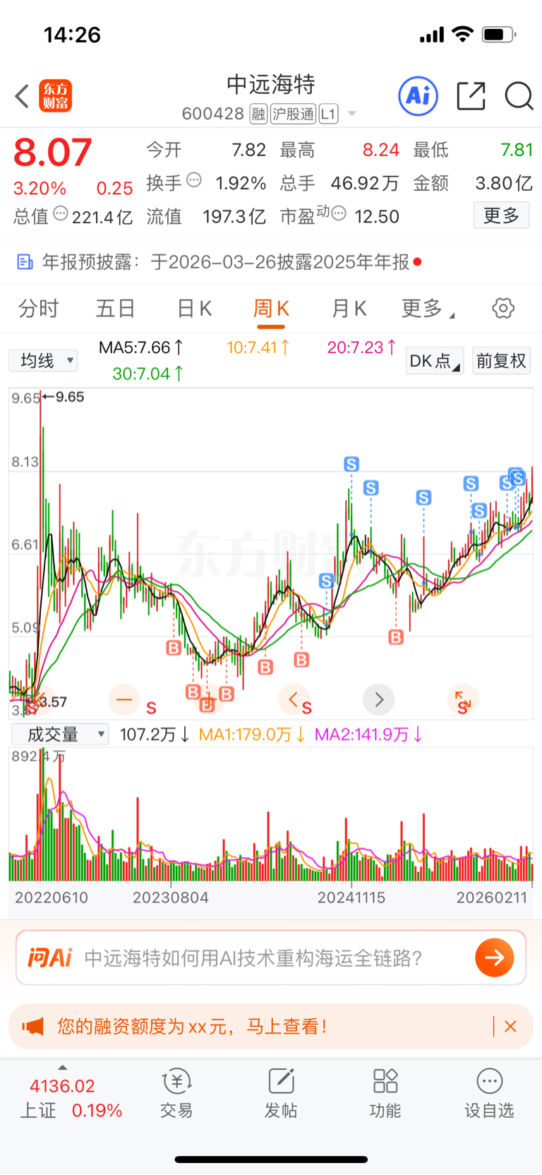 $中远海特(SH600428)$ 还剩1股 竟然破8块