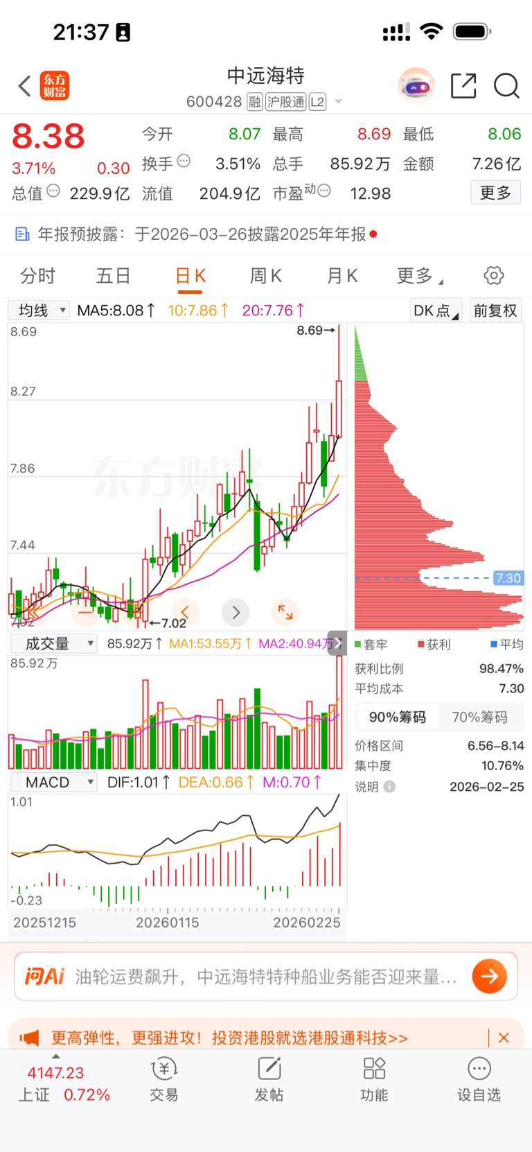 $中远海特(SH600428)$ 明天开启连续下跌模式,1个月没跑了,树上凉快,骚年们