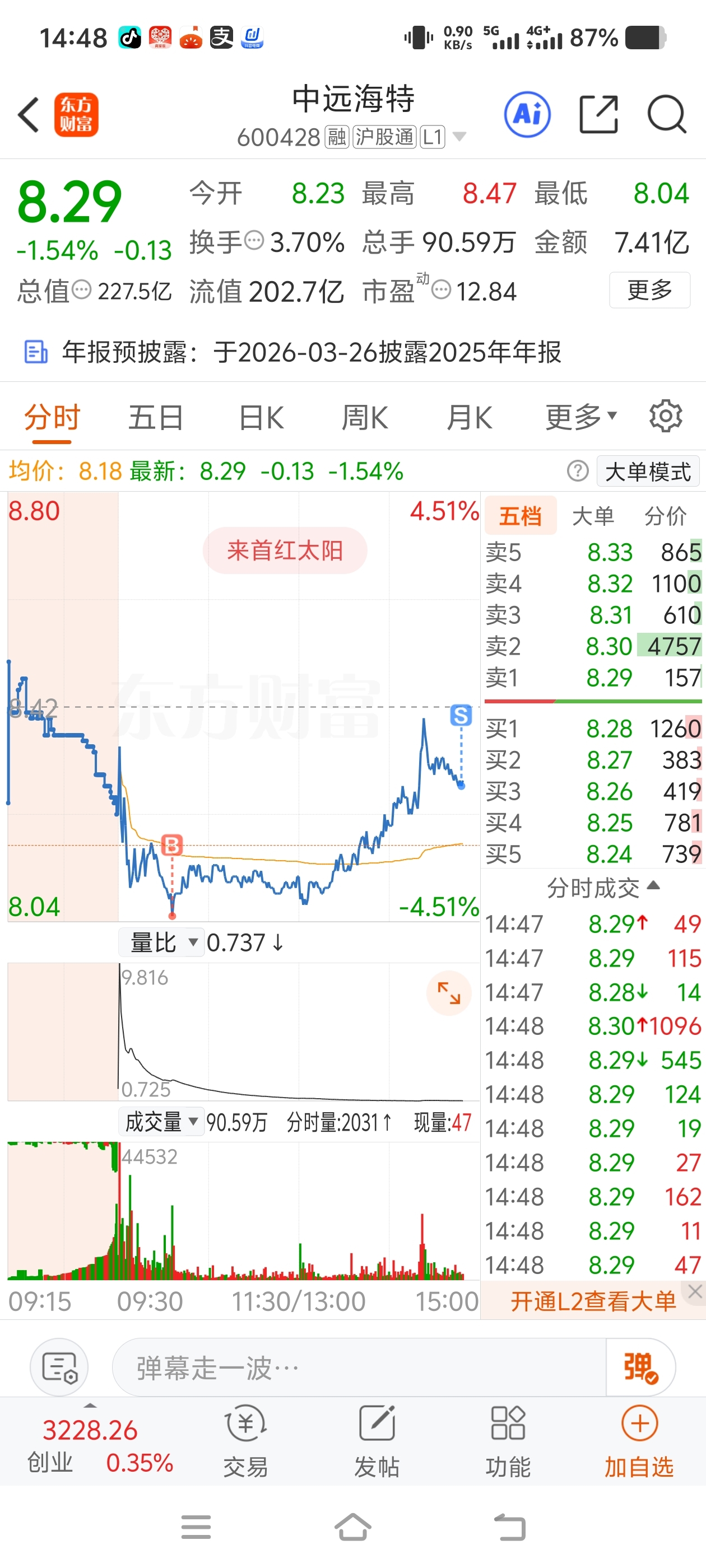 $中远海特(SH600428)$ 今天落袋为安,下周继续加油
