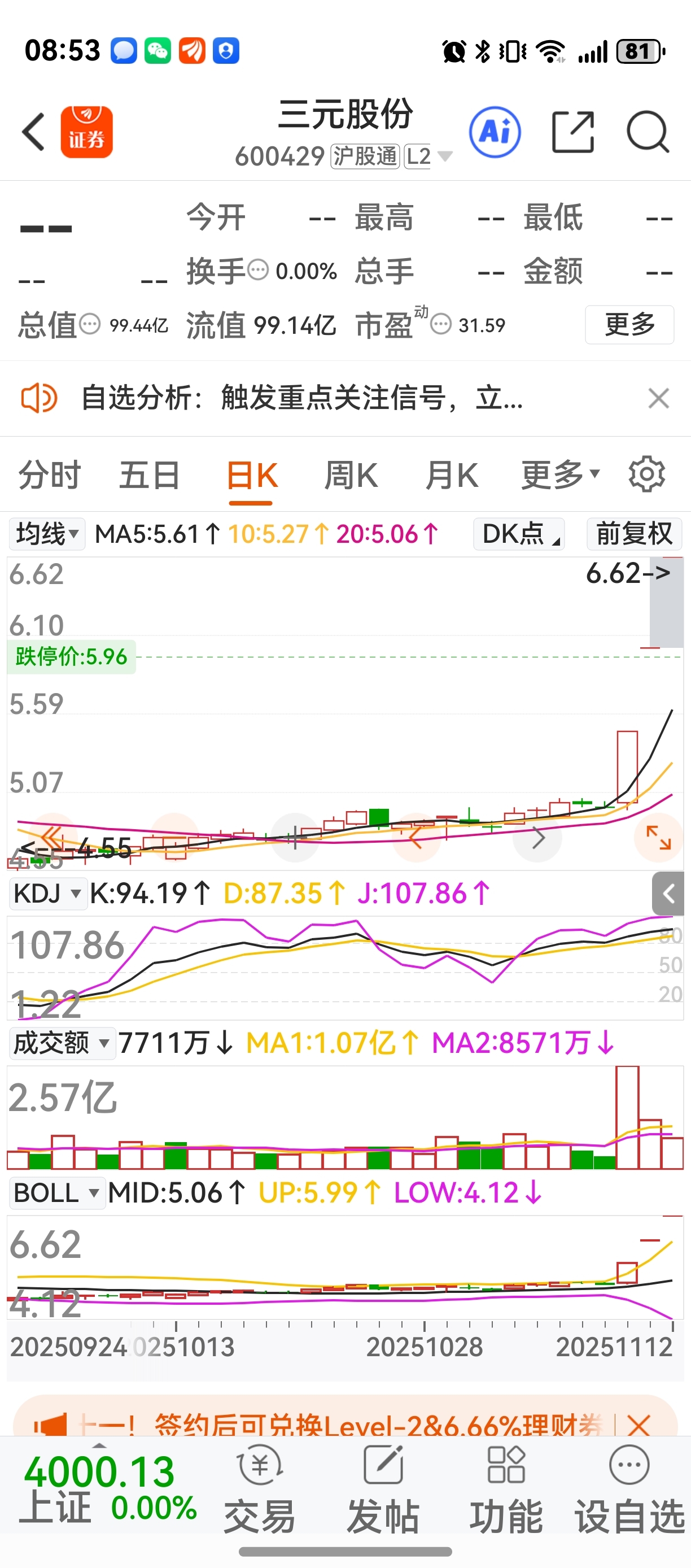 $三元股份(SH600429)$ 三元昨天缩量板实属意外,今天预测会有分歧放量或开板(今天能板就已经是越预期了)去留随意,建议撒出本金或减半仓位。