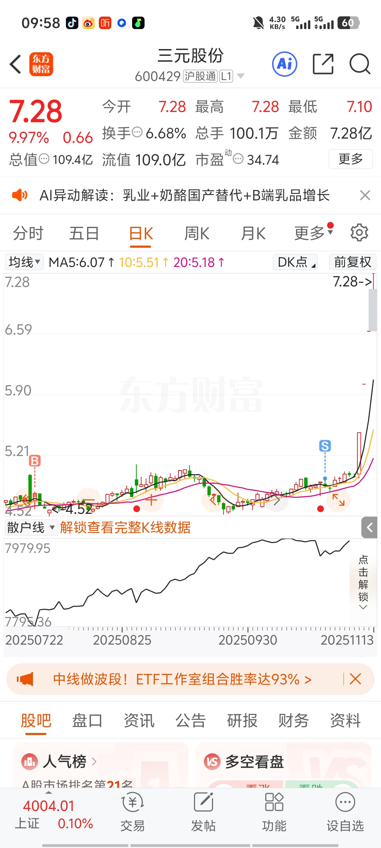 $三元股份(SH600429)$ 老子真的服了,卖了就起飞