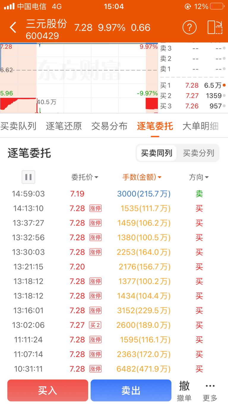$三元股份(SH600429)$ 主力竞价还砸了3000手,今天换手30%,老主力的货还没出完,明天继续出,明天估计换手更大40%左右,明天预计高开3-5%