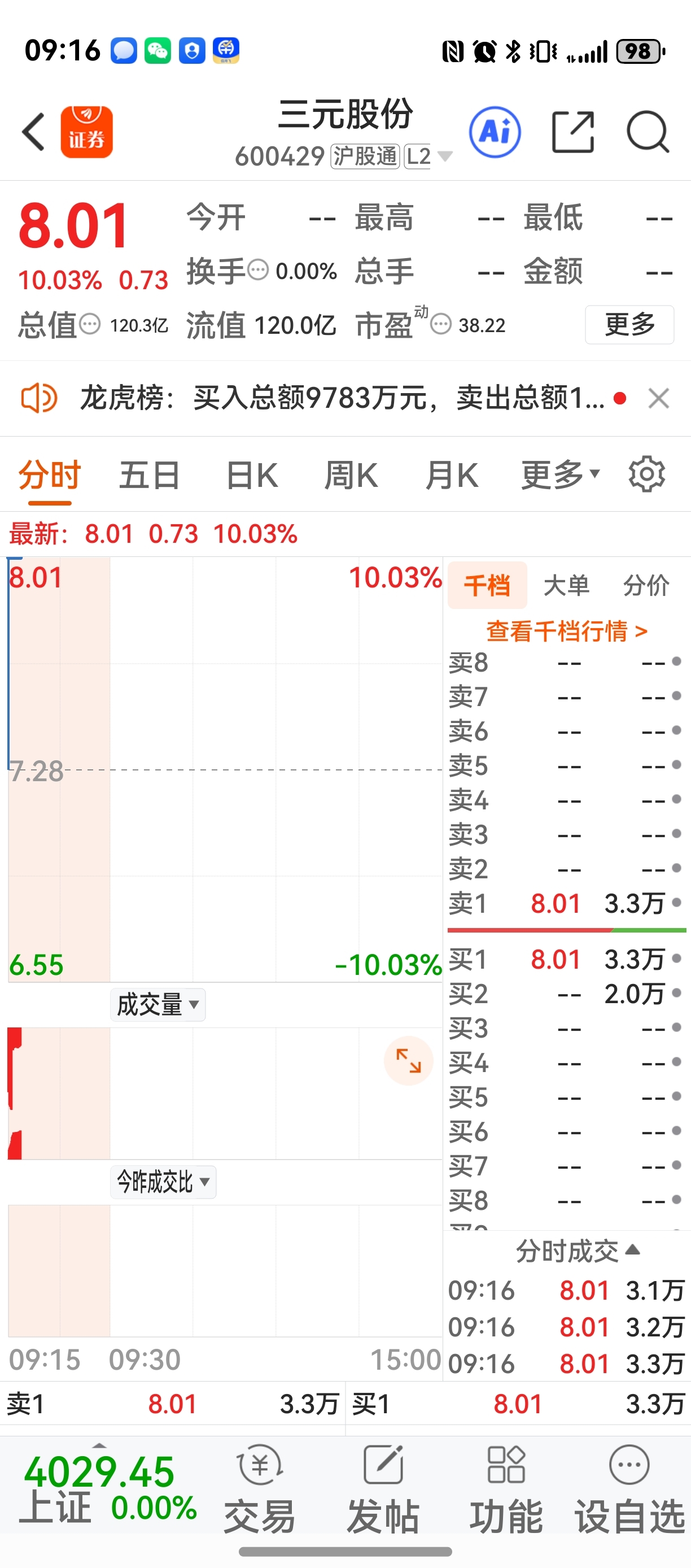 $三元股份(SH600429)$ 今天注意天地盘出货了!