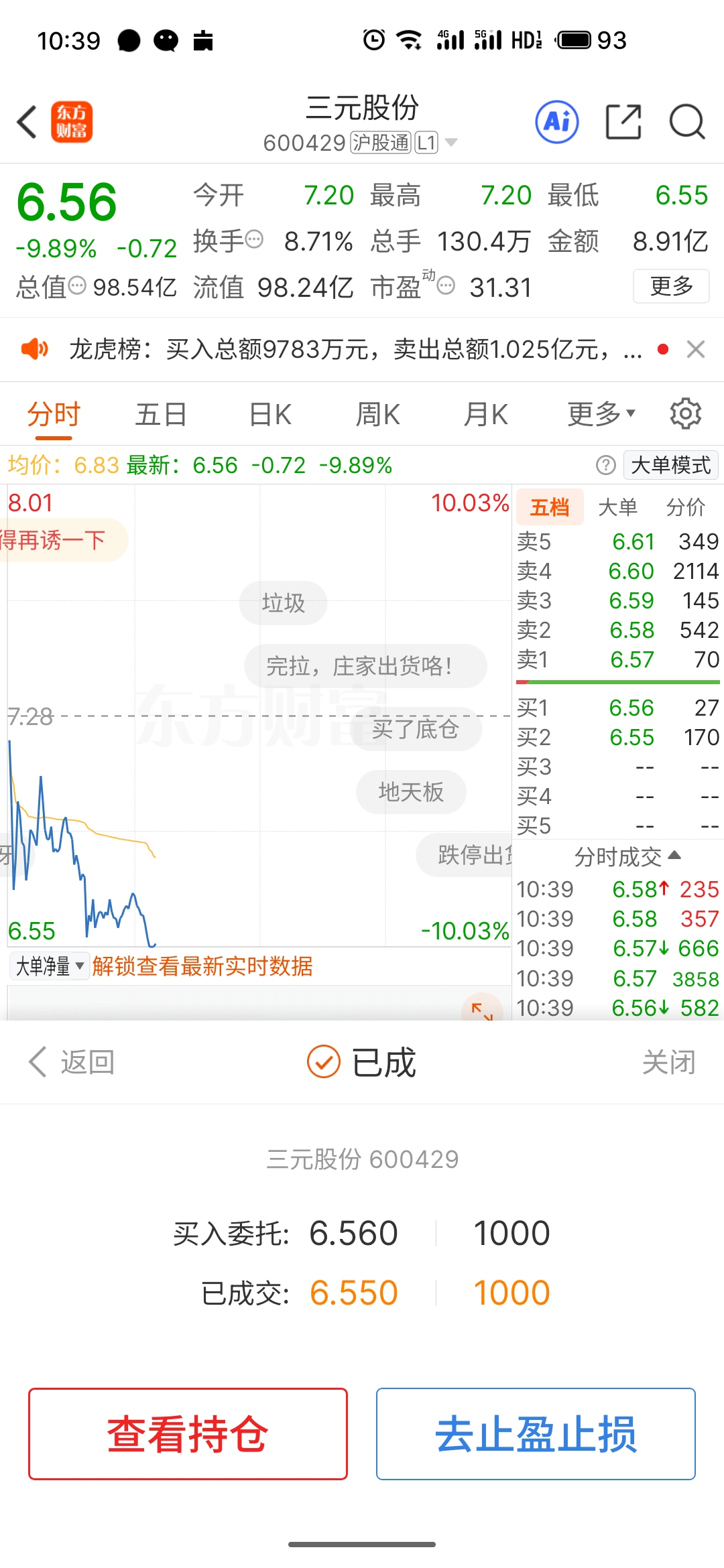 $三元股份(SH600429)$ 诸位大哥,我来当韭菜啦