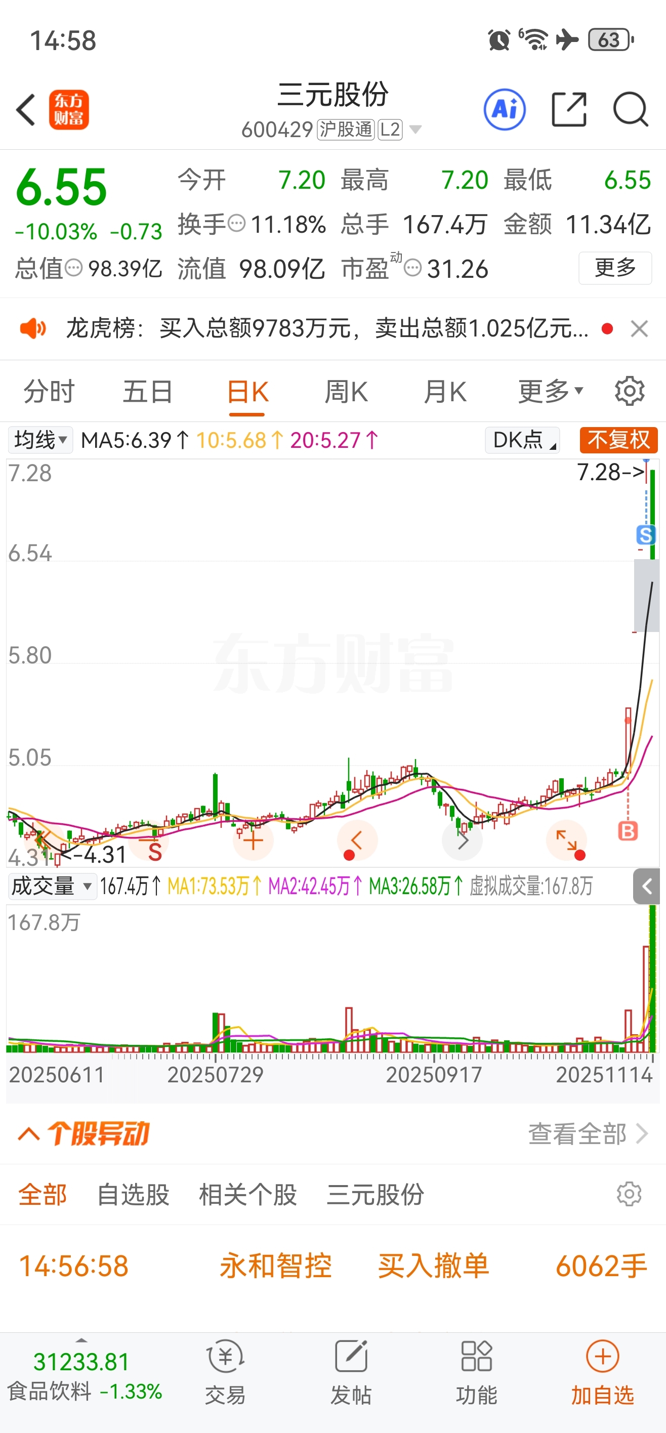 $三元股份(SH600429)$ 昨天被炸板吓走了,今天回来一看放心了