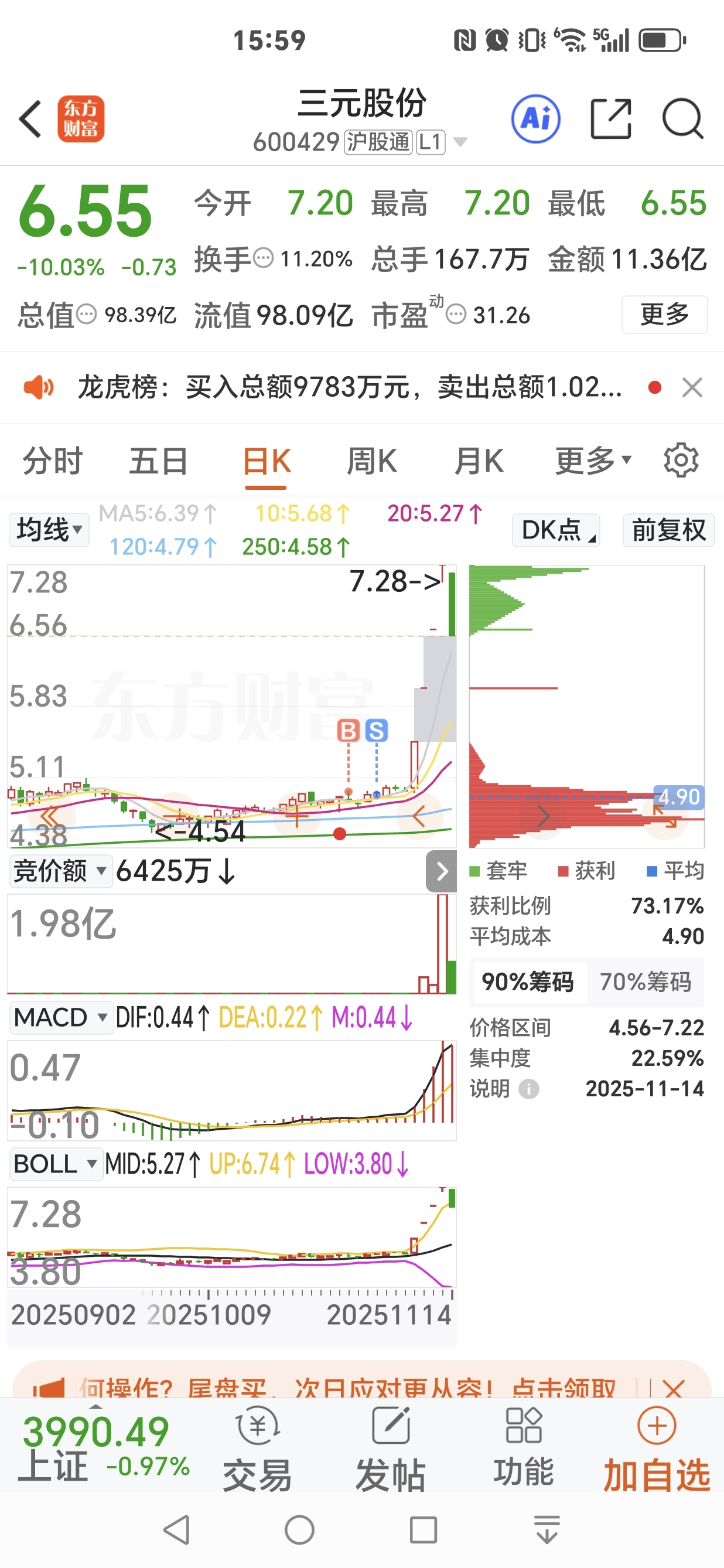 $三元股份(SH600429)$ 卖了。等涨停排队都买不回来。胜利涨停后排队晚上早早挂单也买不到。今天龙州竟价25分排队买不到。真不知道怎么才能买到。