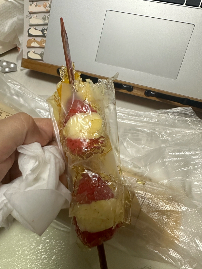 $三元股份(SH600429)$ 奶皮子糖葫芦 草莓 35元/根 味道还可以