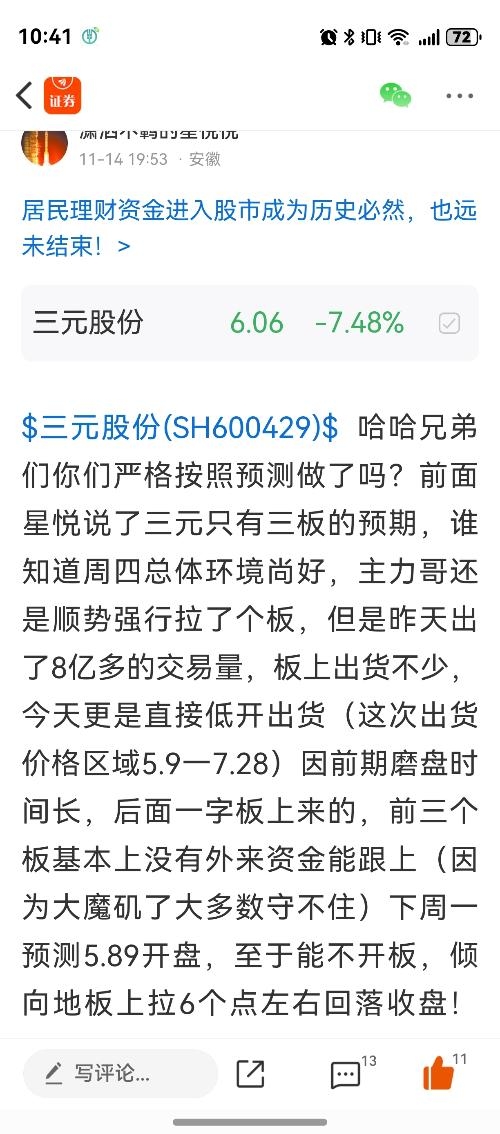 $三元股份(SH600429)$ 哈哈兄弟们A杀己成定局,今天的走势已经基本上符合前期预测,杀至20日线处已不可避免了(倾向杀至5.50左右止跌横行,十天半月后再次起拉出货,因为一次性货想把货出完有点困难,再次起落点估计在5.60一7.88)