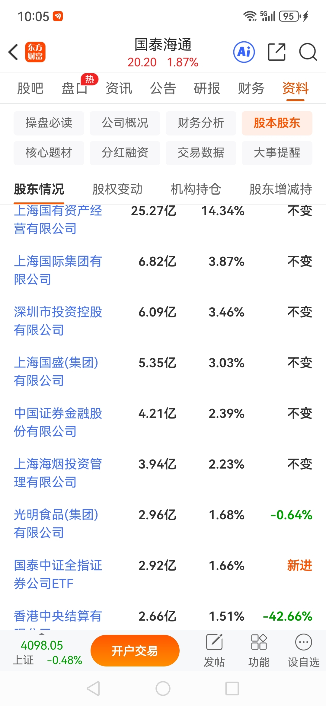 光明食品(集团)有限公司持有国泰海通2.96亿股,目前价值60亿。后边国泰海通翻