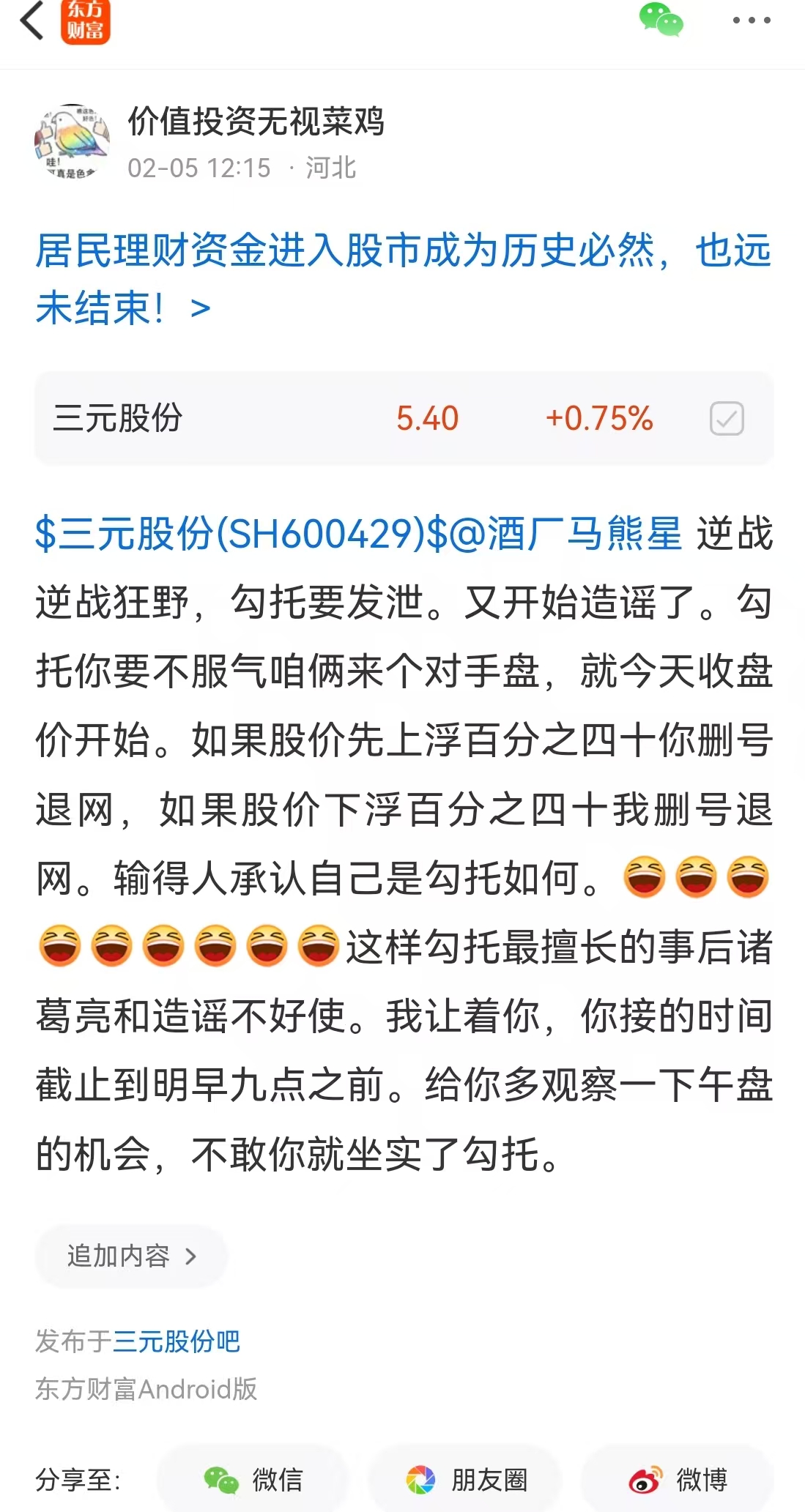 温馨提示: 1.根据《证券法》规定,禁止编造、传播虚假信息或者误导性信息,扰乱证券市场;2.用户在本社区发表的所有资料、言论等仅代表个人观点,与本网站立场无关,不对您构成任何投资建议。用户应基于自己的独立判断,自行决定证券投资并承担相应风险。《东方财富社区管理规定》