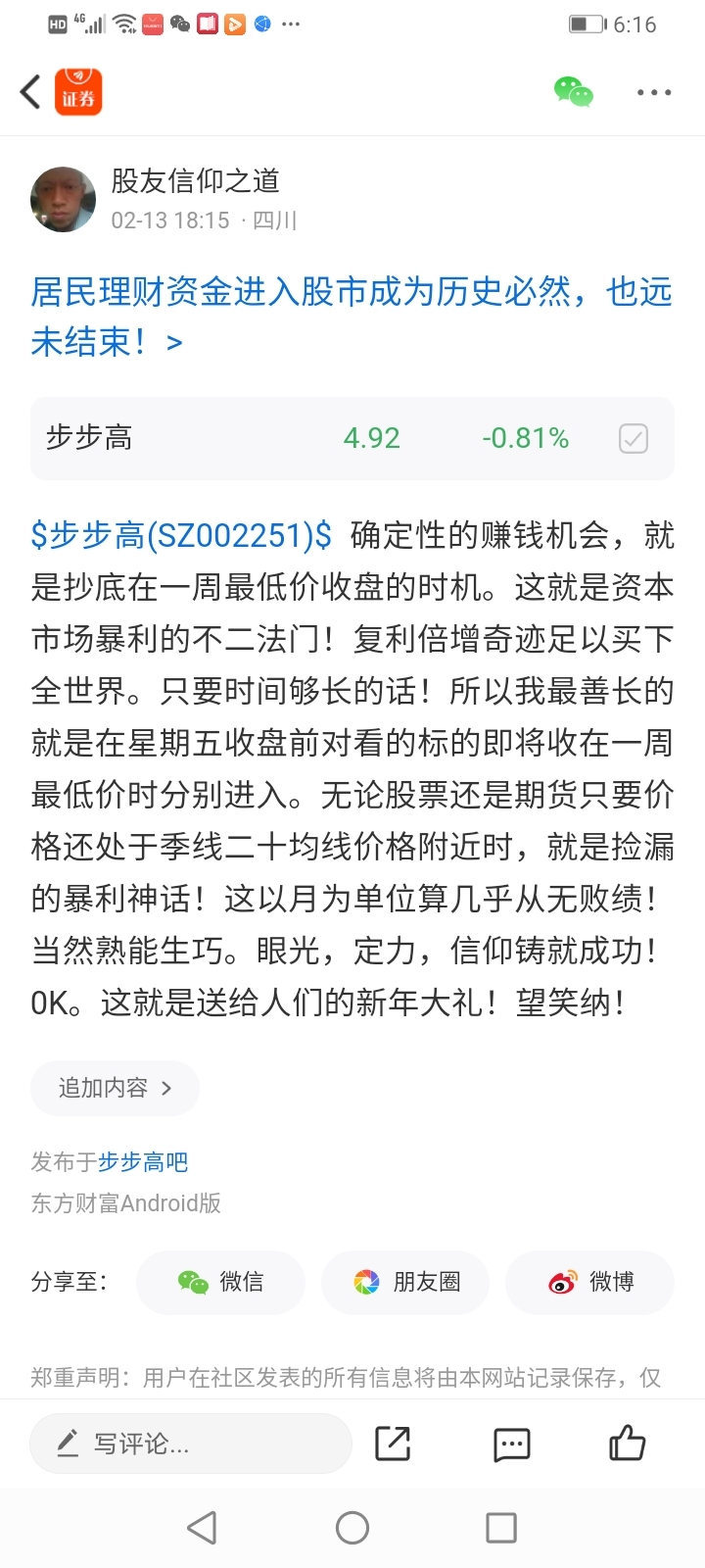 温馨提示: 1.根据《证券法》规定,禁止编造、传播虚假信息或者误导性信息,扰乱证券市场;2.用户在本社区发表的所有资料、言论等仅代表个人观点,与本网站立场无关,不对您构成任何投资建议。用户应基于自己的独立判断,自行决定证券投资并承担相应风险。《东方财富社区管理规定》