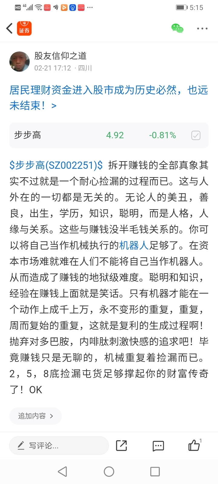 温馨提示: 1.根据《证券法》规定,禁止编造、传播虚假信息或者误导性信息,扰乱证券市场;2.用户在本社区发表的所有资料、言论等仅代表个人观点,与本网站立场无关,不对您构成任何投资建议。用户应基于自己的独立判断,自行决定证券投资并承担相应风险。《东方财富社区管理规定》