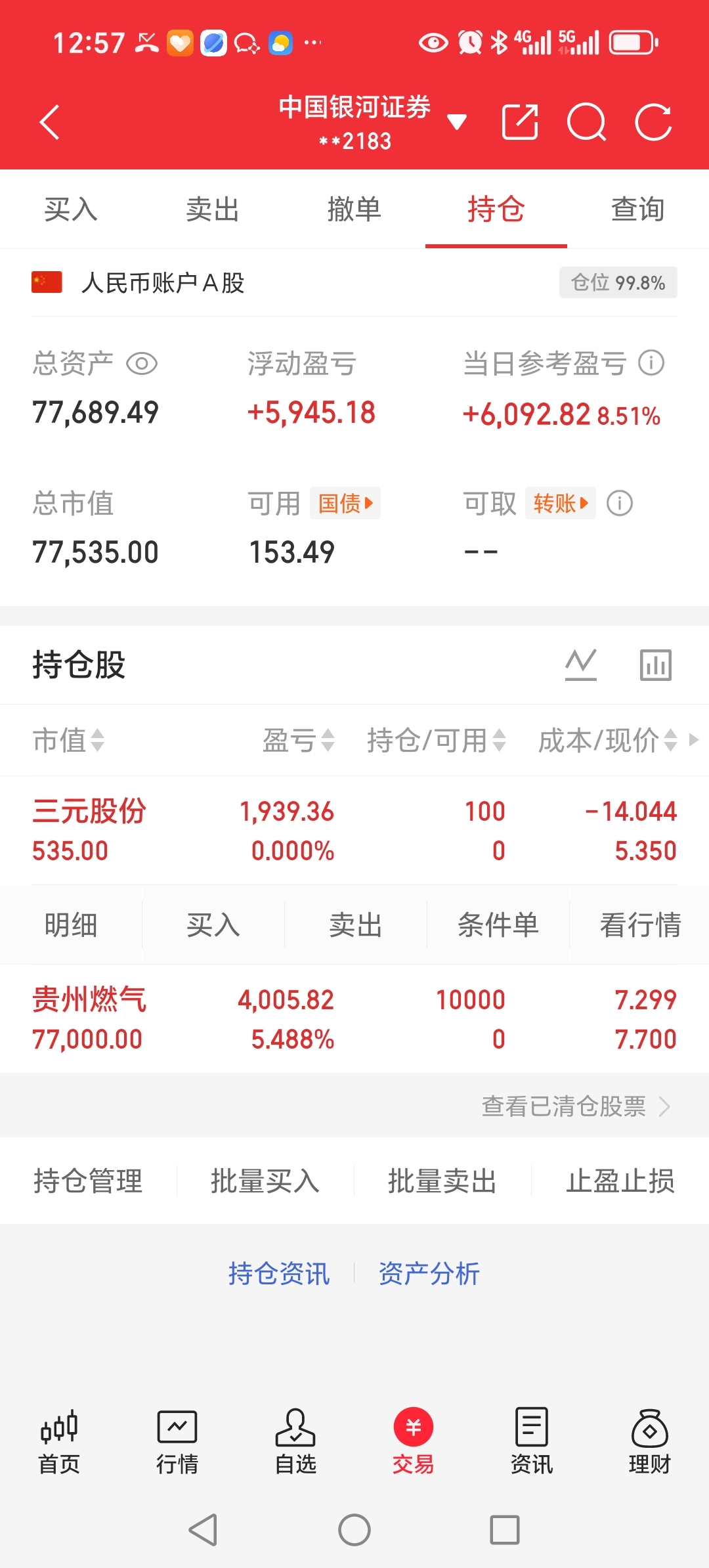 各位股友,我的今天小绿了三元不涨,今天卖掉换贵州燃气了,有图为证